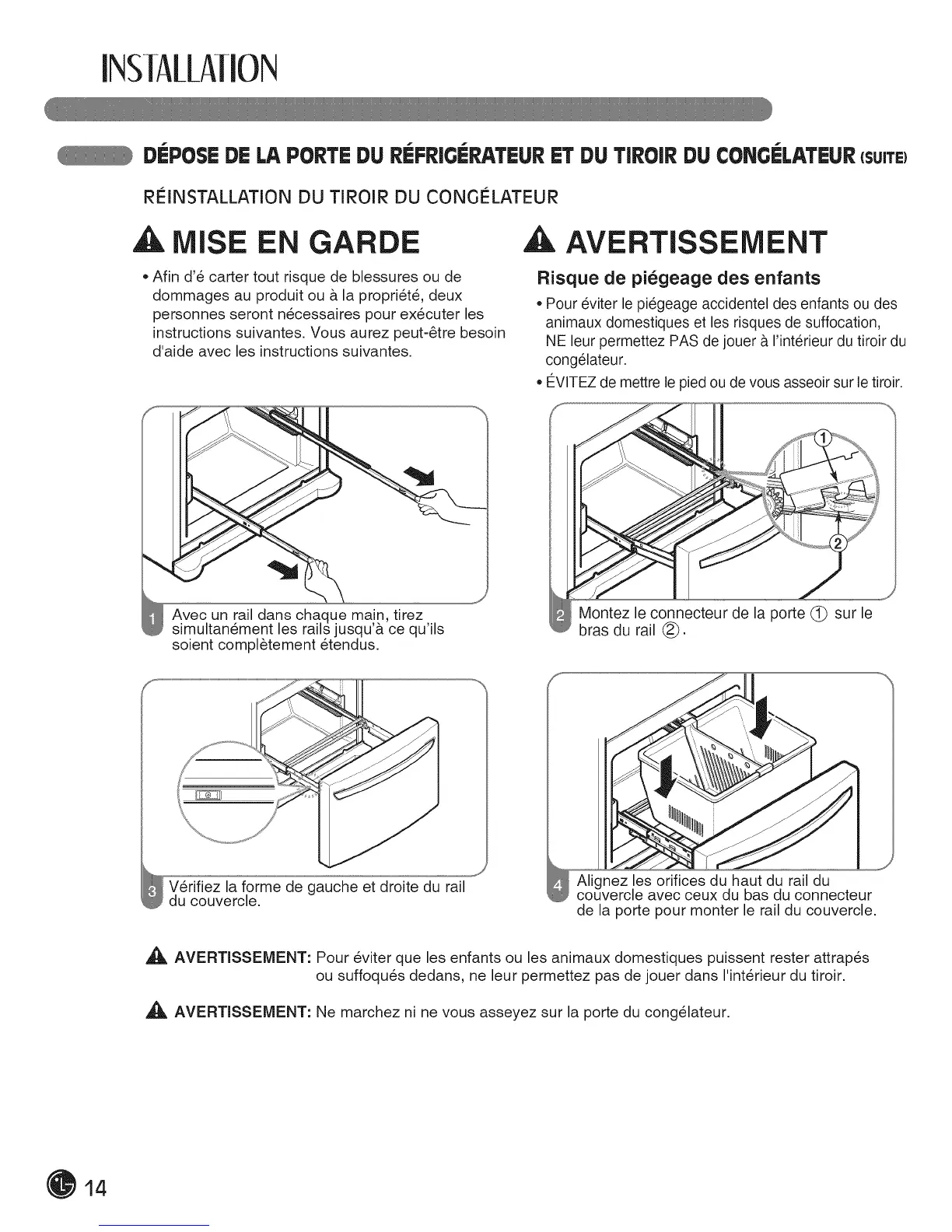 ,_ AVERTISSEMENT: Ne marchez nine vous asseyez sur la porte du congelateur.