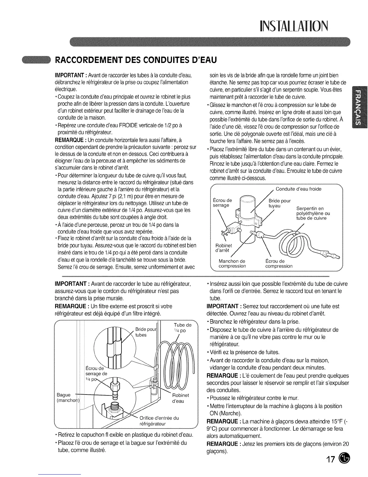 IMPORTANT : Avantde raccorderle tube au refrig6rateur,