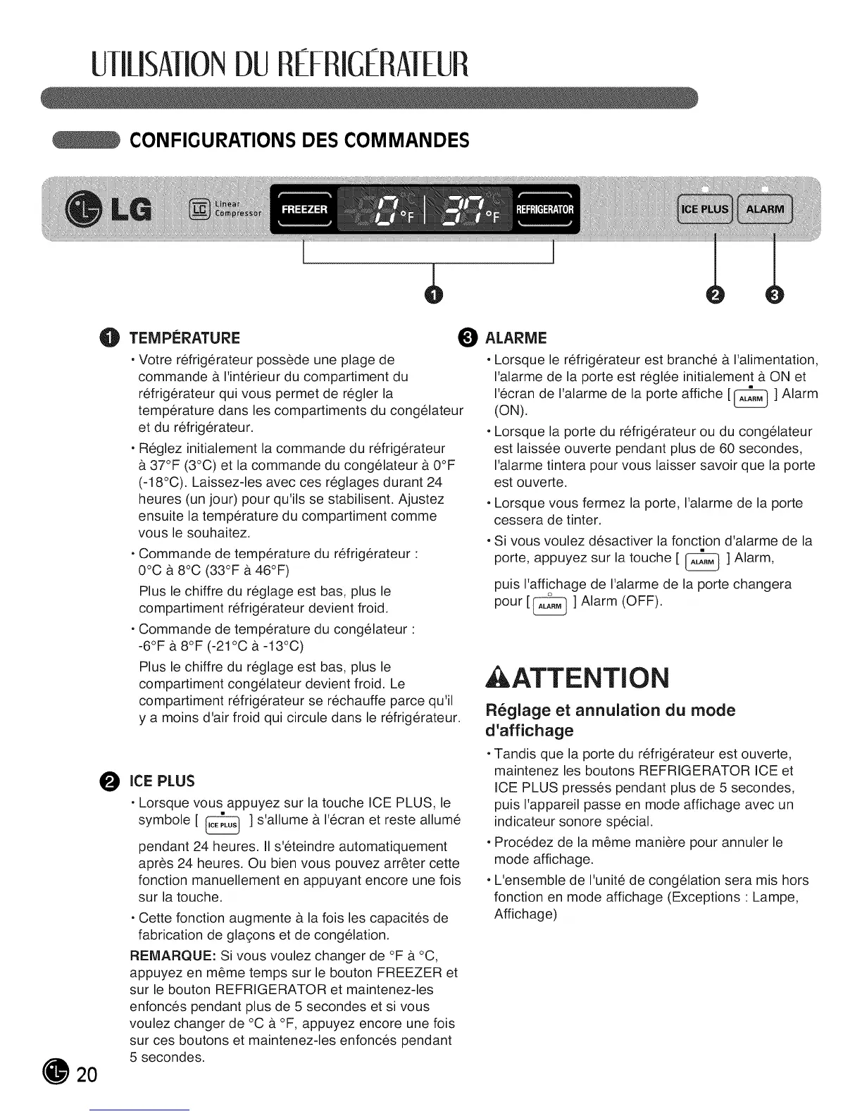 • Lorsque vous appuyez sur la touche ICE PLUS, le