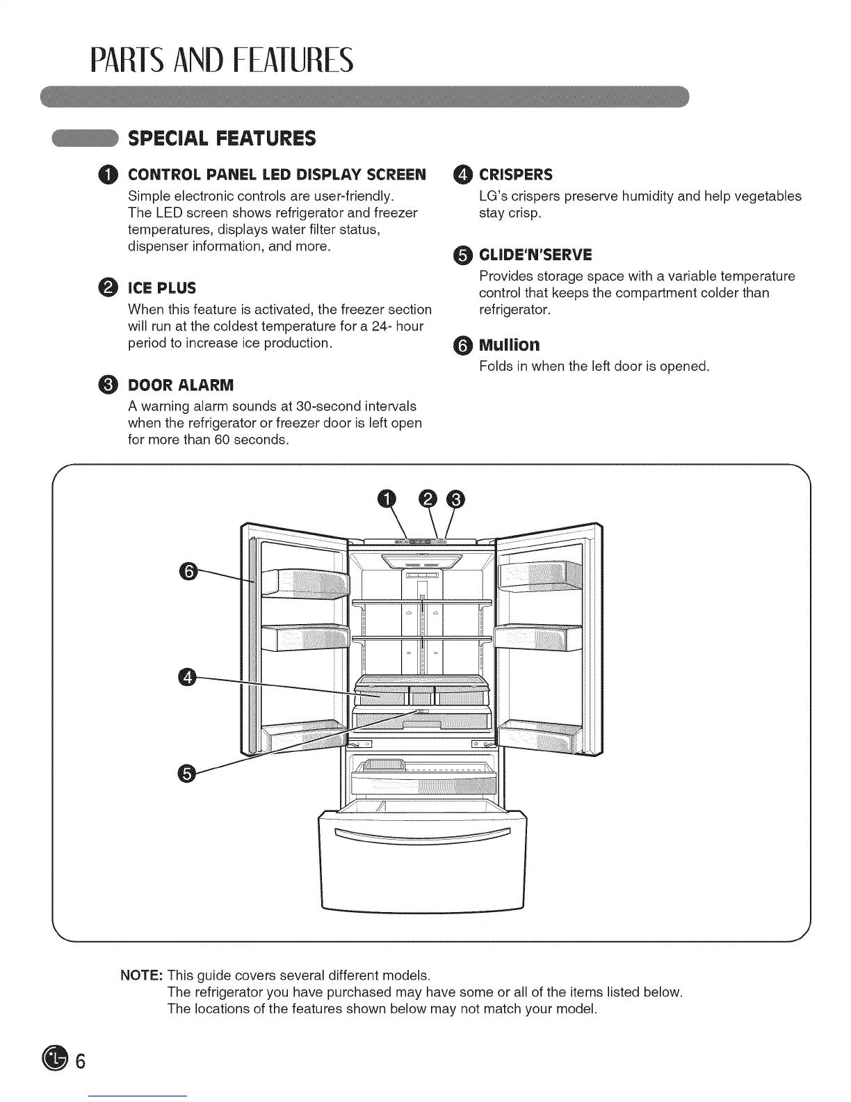 The refrigerator you have purchased may have some or all of the items listed below.