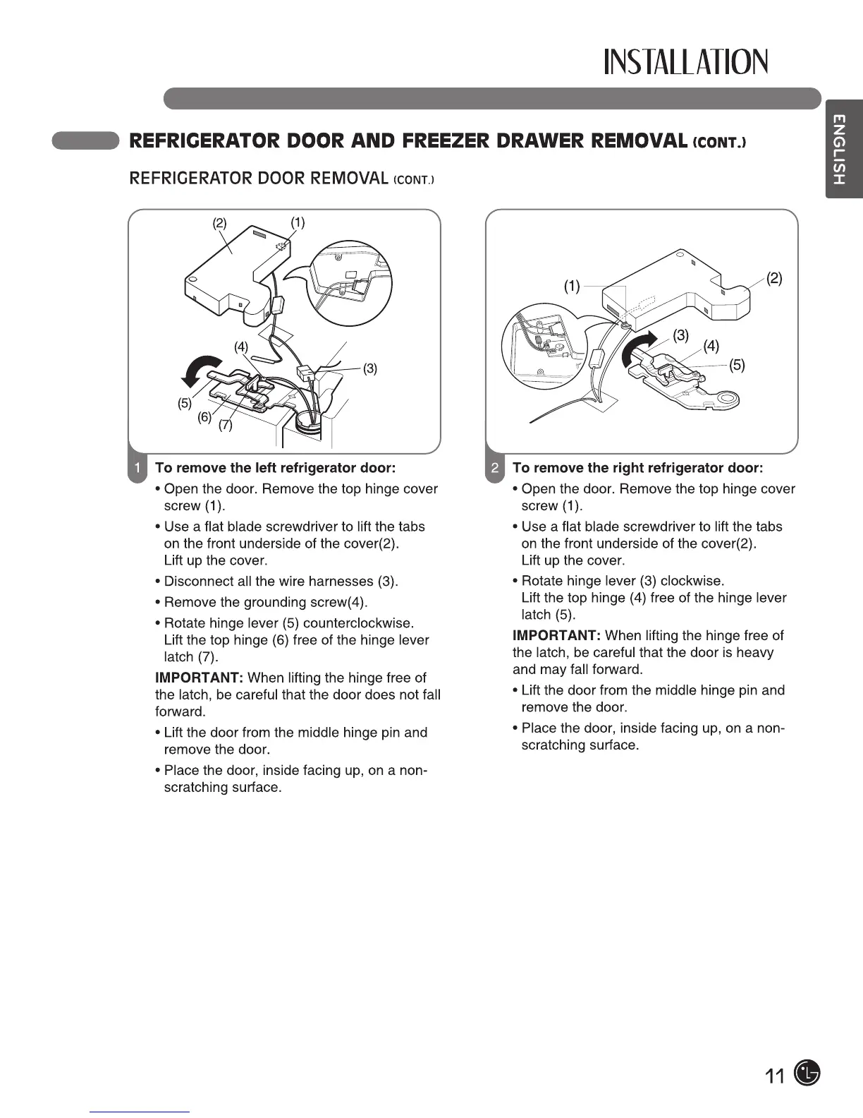 LG LFCS25426* - To Remove the Left Refrigerator Door; To Remove the Right Refrigerator Door