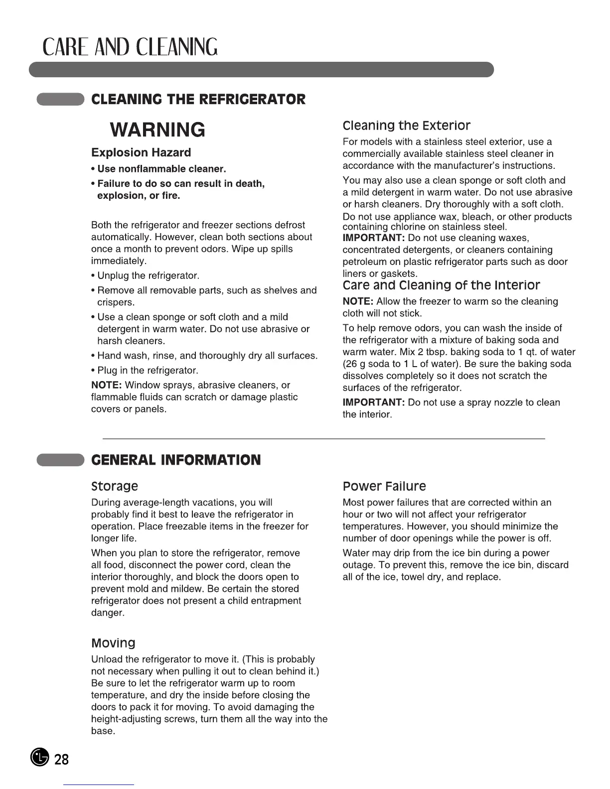 LG LFCS25426* - Care and Cleaning; Cleaning the Refrigerator