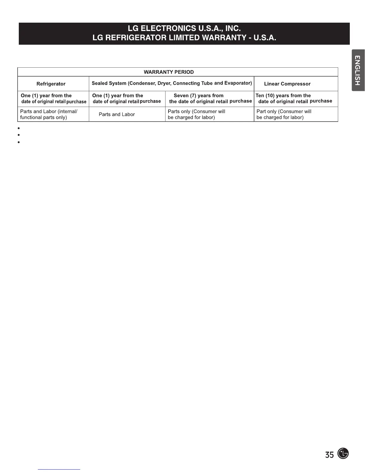 below, LG Electronics (“LG”) will, at its option, repair or replace the Product. This limited warranty is valid only to the original retail purchaser of the Product