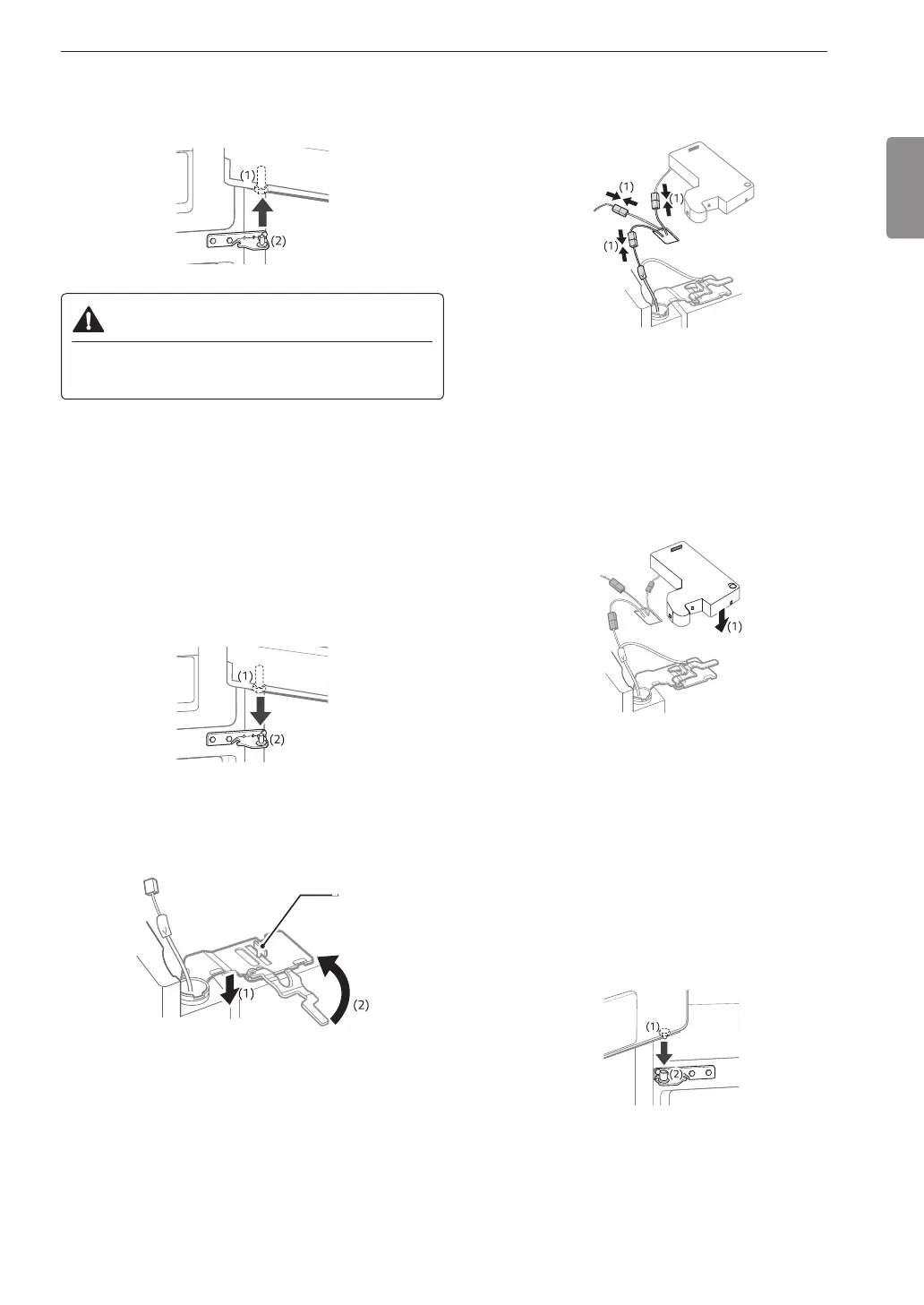 Fit the hinge (1) over the hinge lever latch and slot