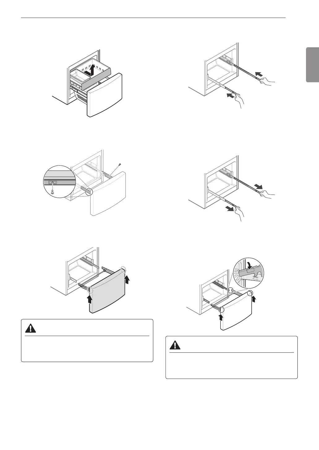 Grasp the drawer on each side and hook the