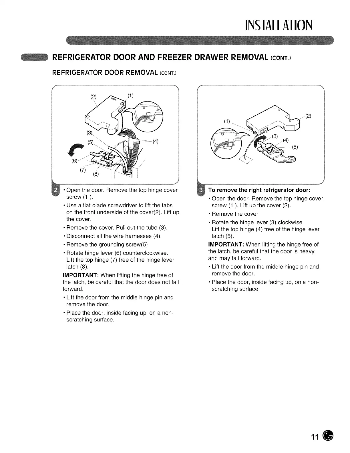 REFRIGERATOR DOOR REMOVAL (CONT.)