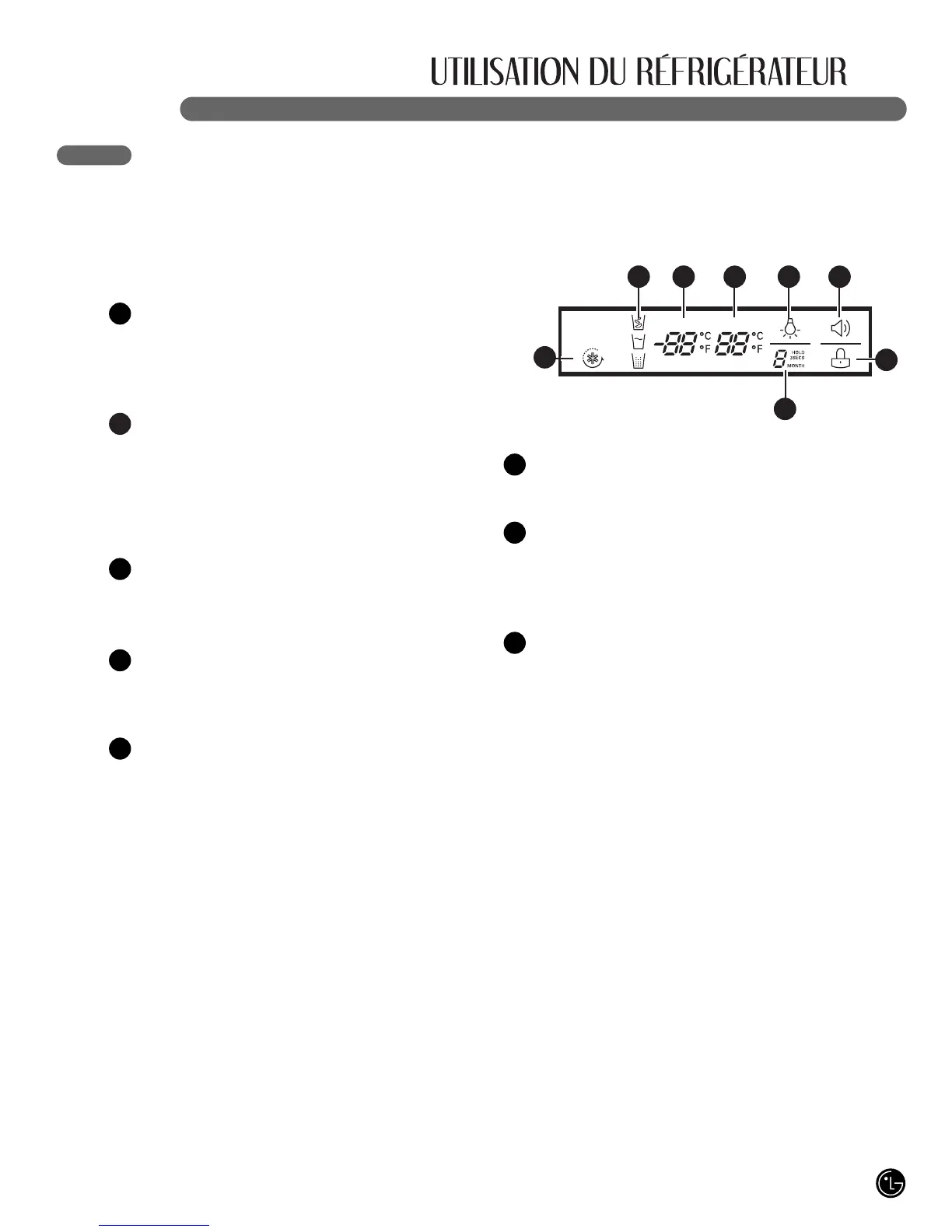 d’état du fi ltre à eau, de l’alarme de porte, et du