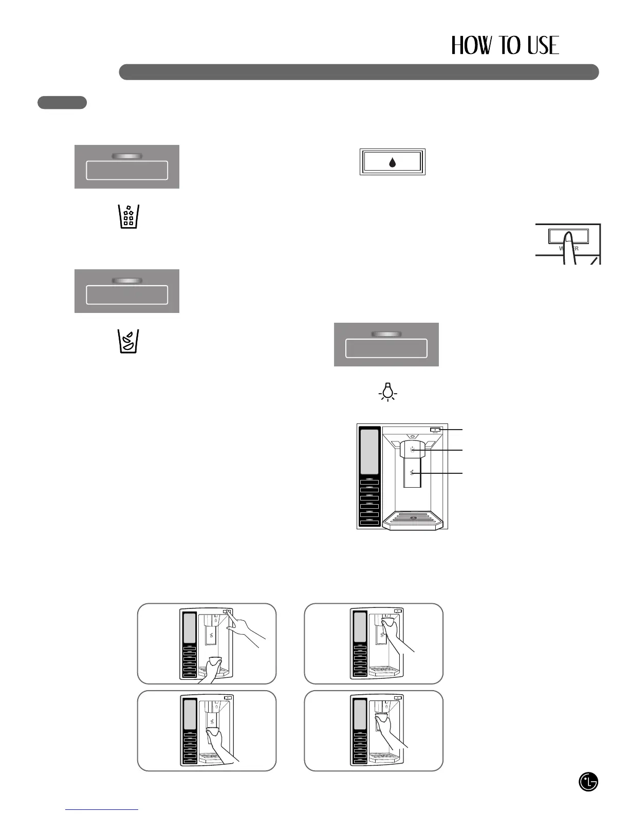 When opening the container with a small opening, use it near the opening of the water or ice dispenser