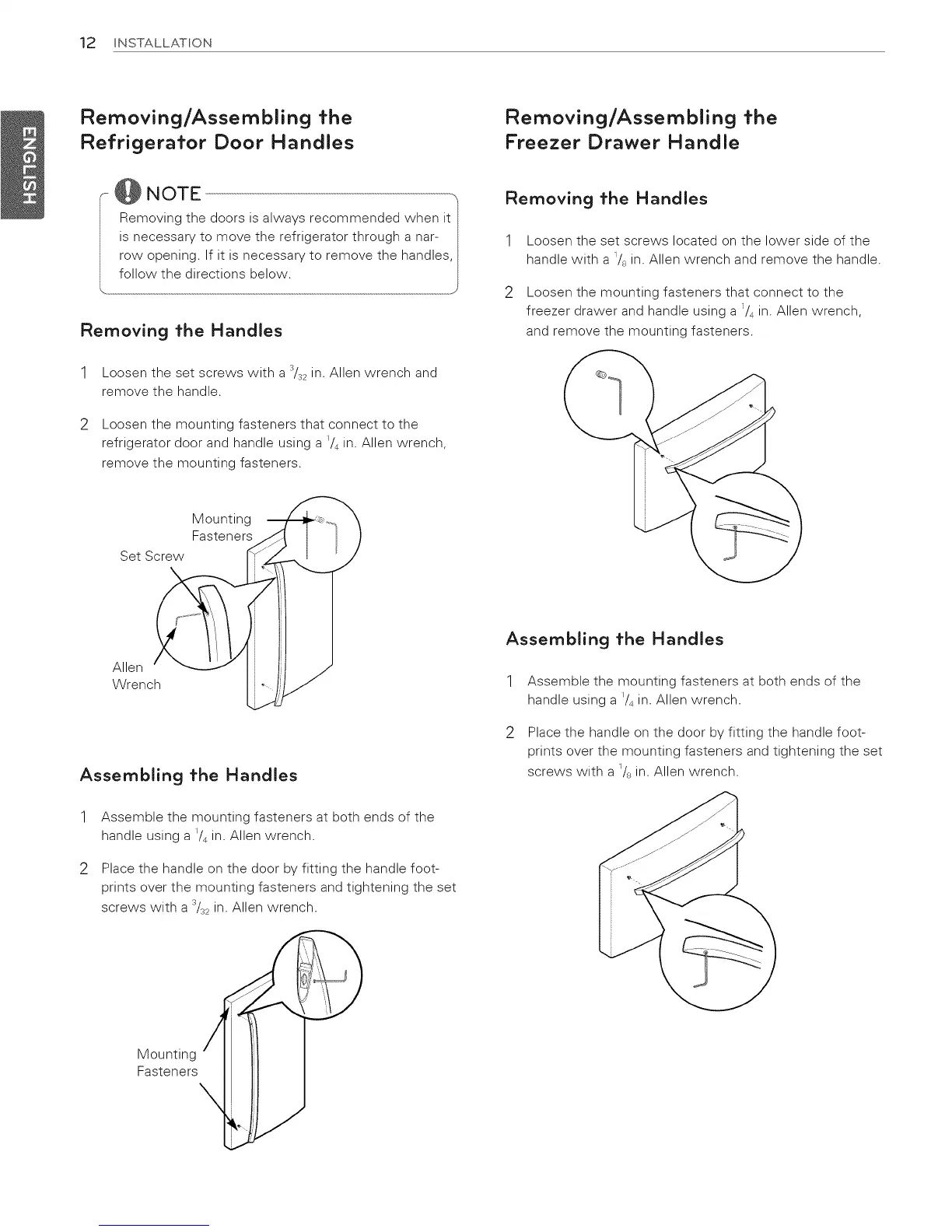 refrigerator door and handle using a _/4in. Allen wrench,