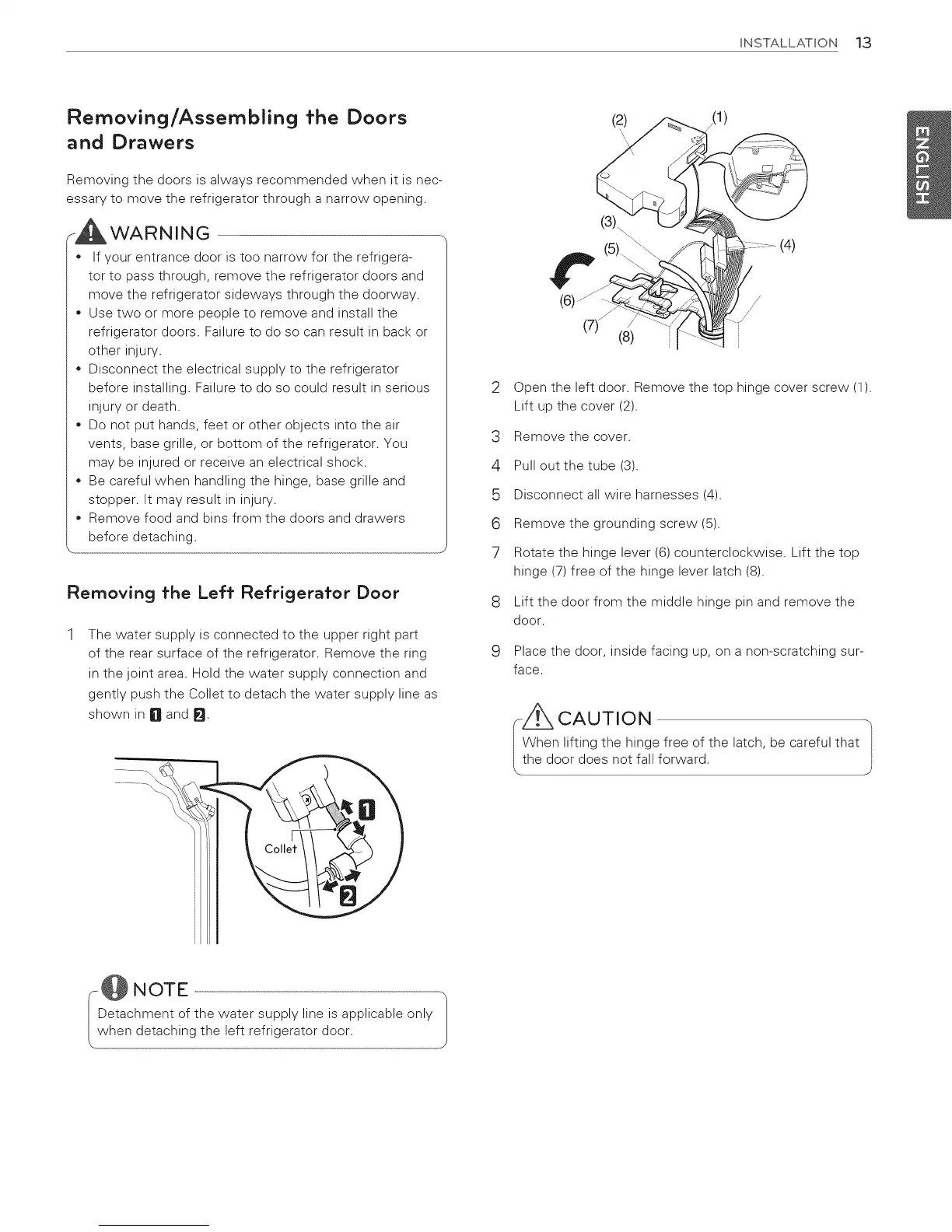when detaching the left refrigerator door.