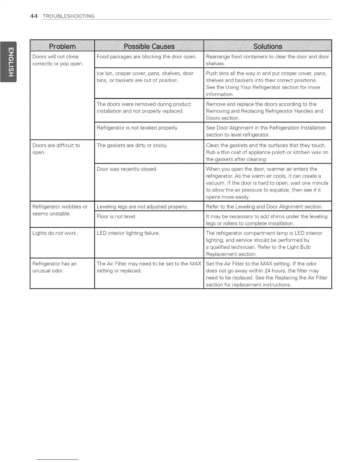 Refrigerator is not leveled properly. See Door Alignment in the Refrigeration Installation