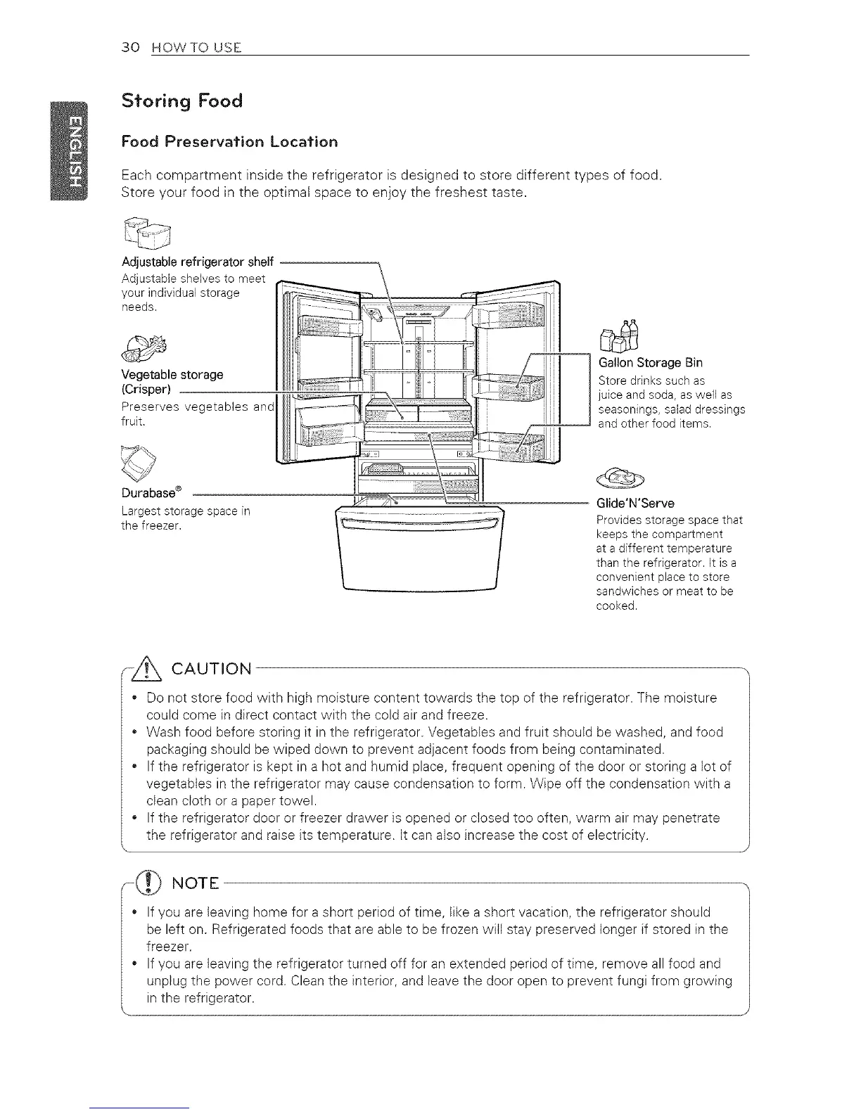 * Do not store food with high moisture content towards the top of the refrigerator. The moisture