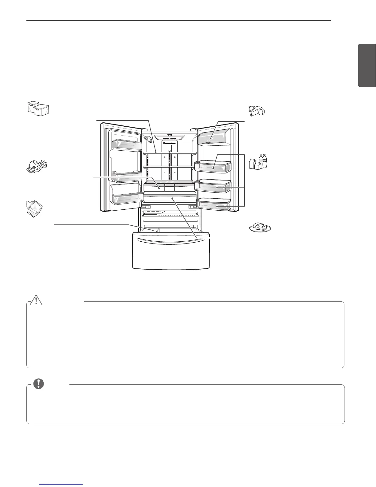 Each compartment inside the refrigerator is designed to store different types of food.