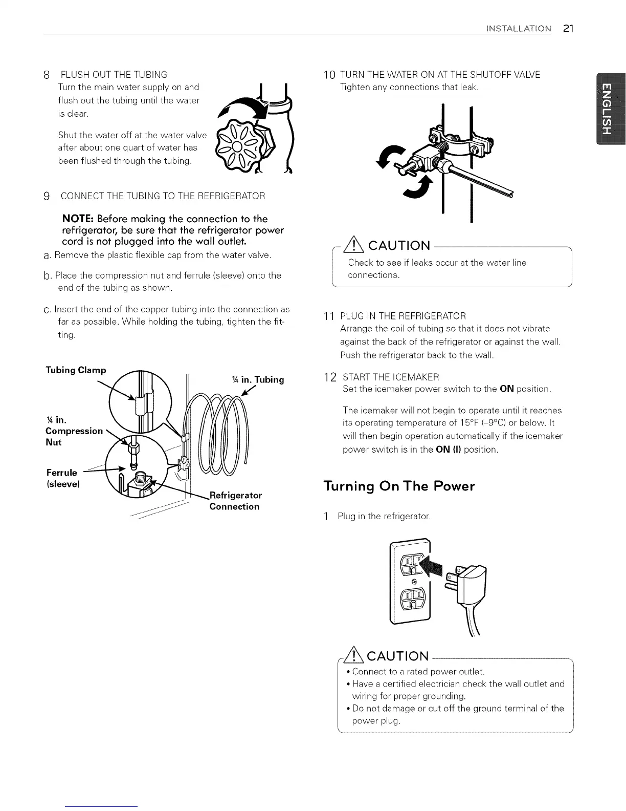 9 CONNECT THE TUBING TO THE REFRIGERATOR