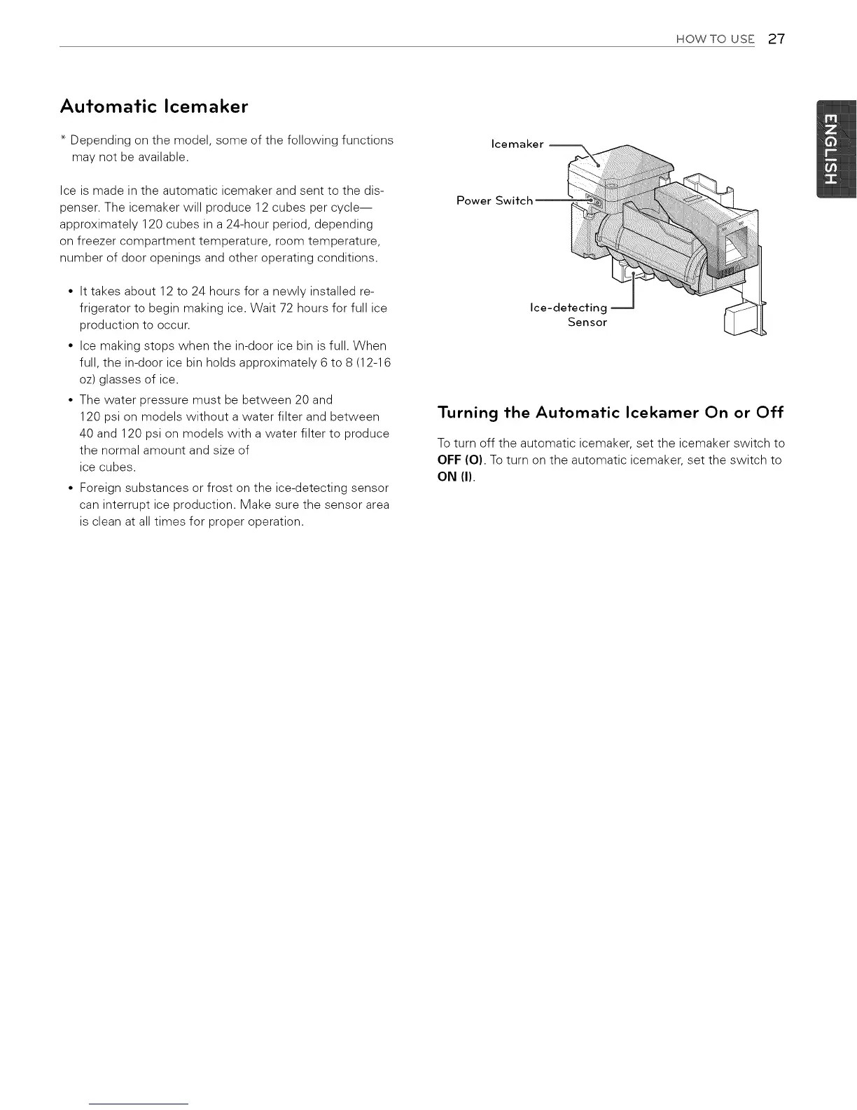 OFF (0). To turn on the automatic icemaker, set the switch to