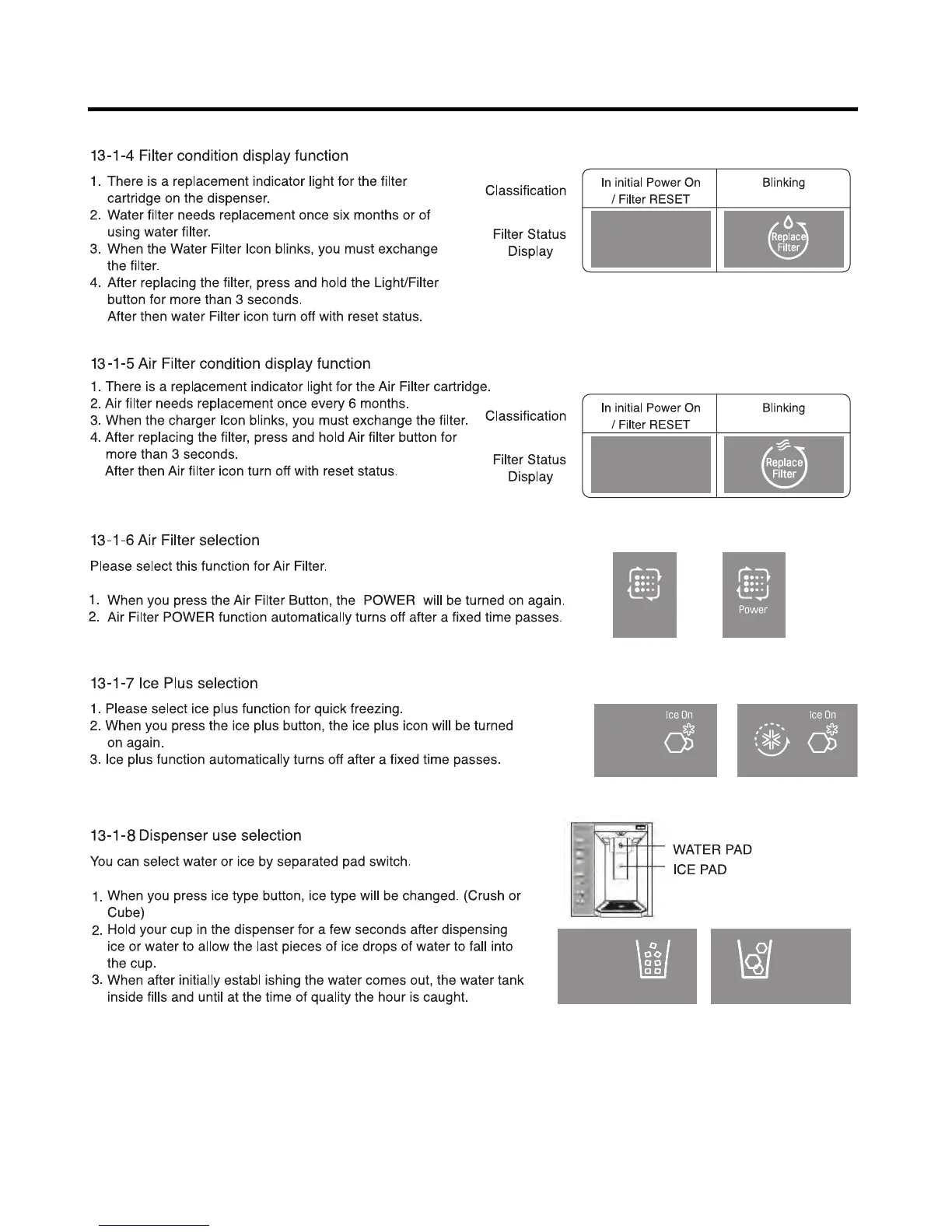 LG LFXC24726S - Filter Condition Display Function; Air Filter Condition Display Function; Air Filter Selection; Dispenser Use Selection