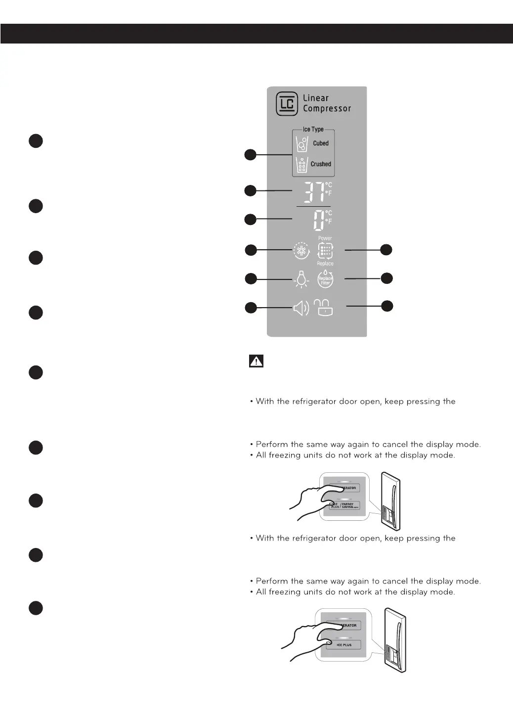 REFRIGERATOR button and ICE PLUS button more than