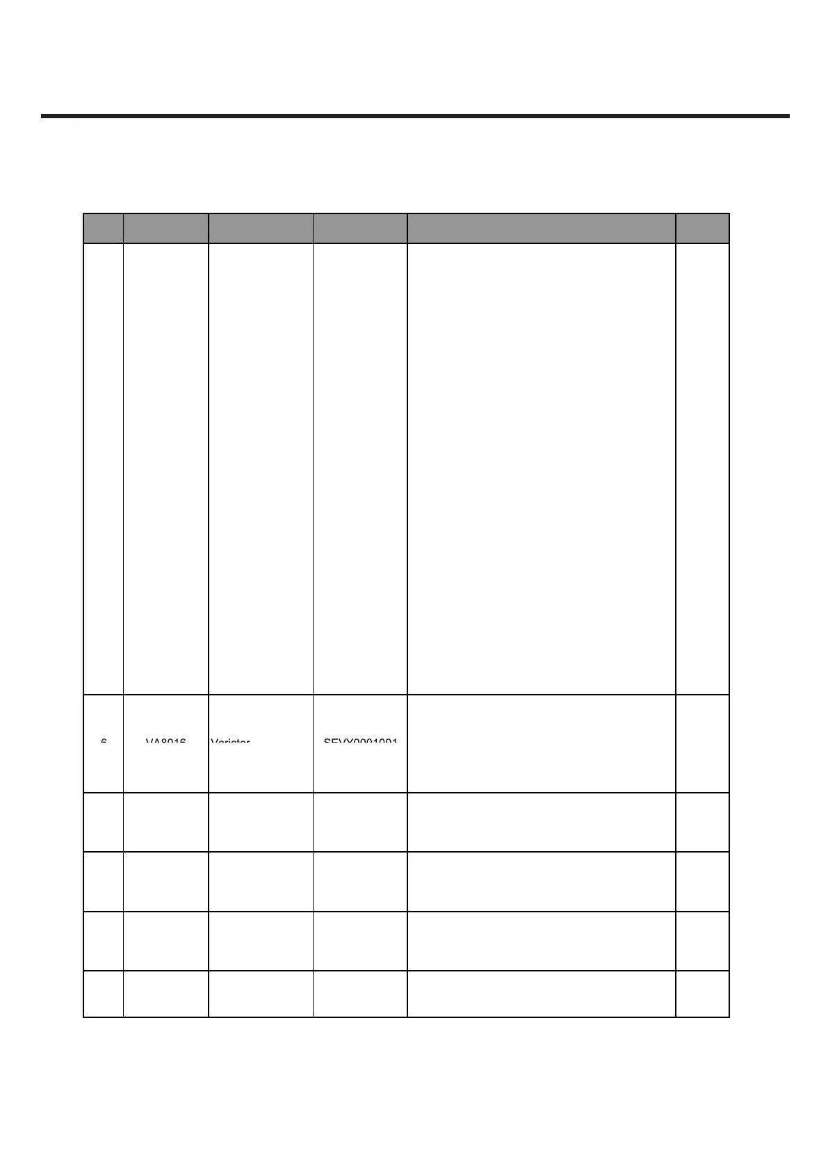 Level LocationNo. Description PartNumber Spec Remark