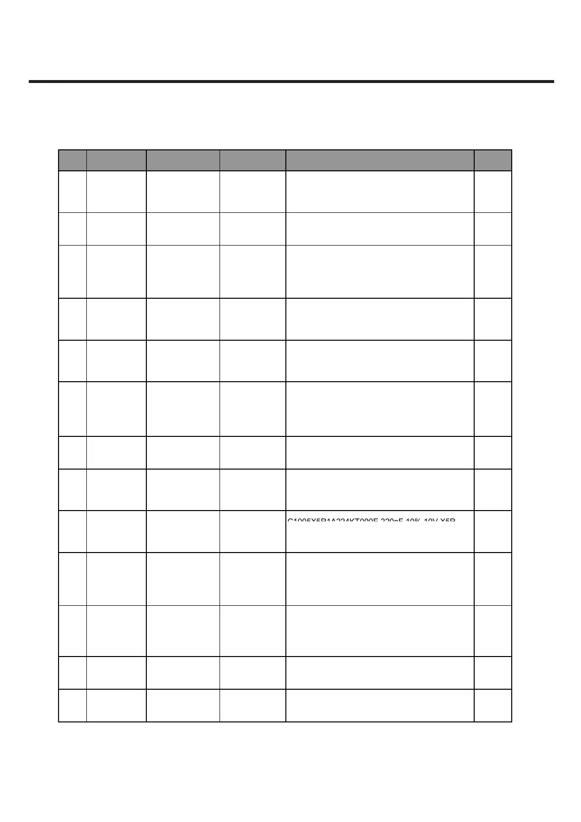 Level LocationNo. Description PartNumber Spec Remark