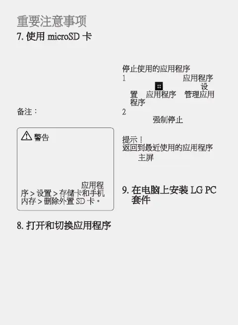 LG LG-E720 - 使用Microsd卡; 打 开和切换应用程序; 在 电脑上安装LgPc 套件
