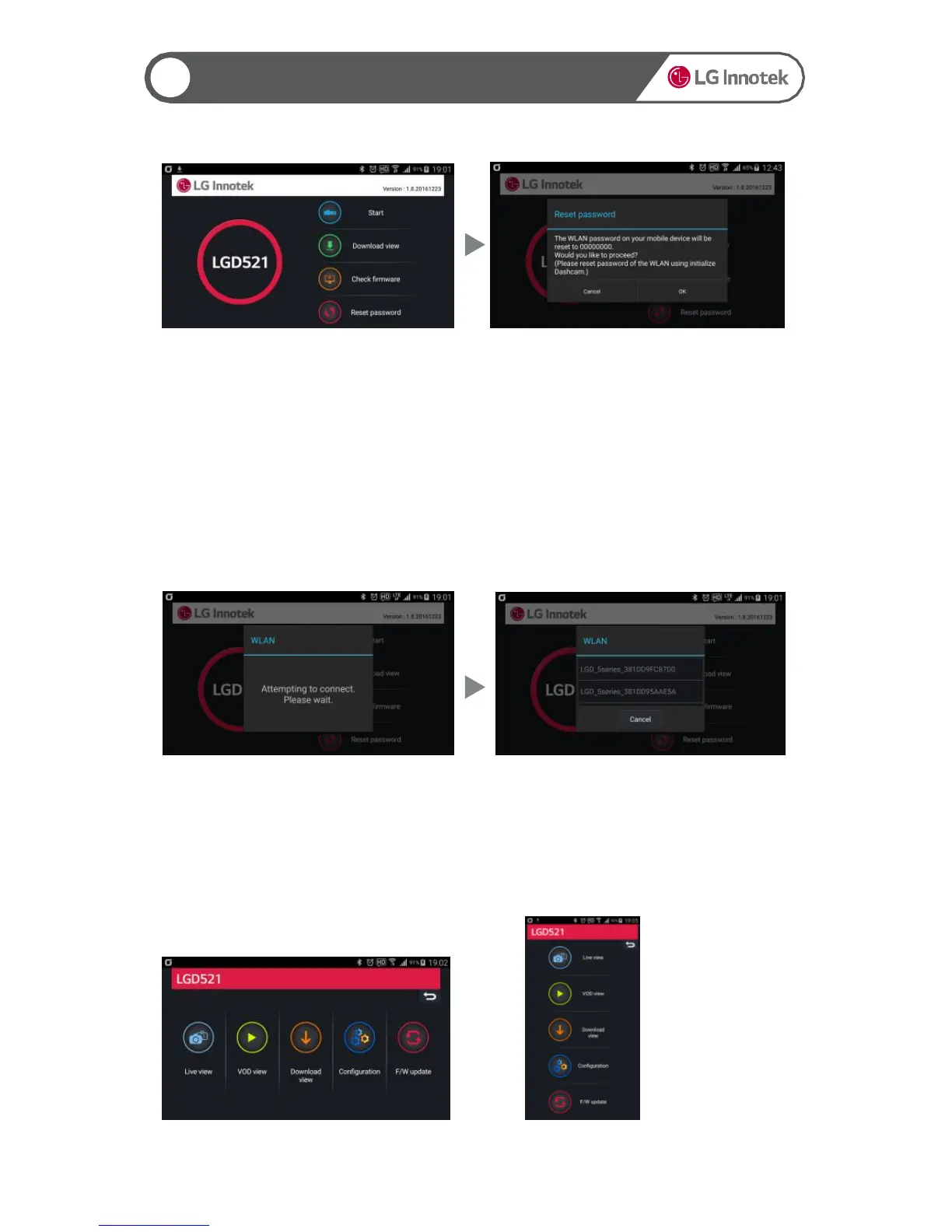 2) Reset the password : Resets the WLAN password saved in your phone (not the black box password) to 00000000.
