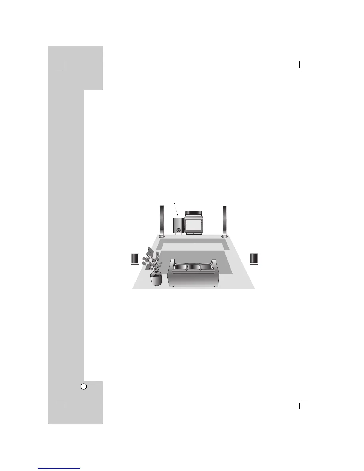 above the level of the listener’s ears. It is also effective to direct the rear speakers towards a wall or ceiling to further disperse