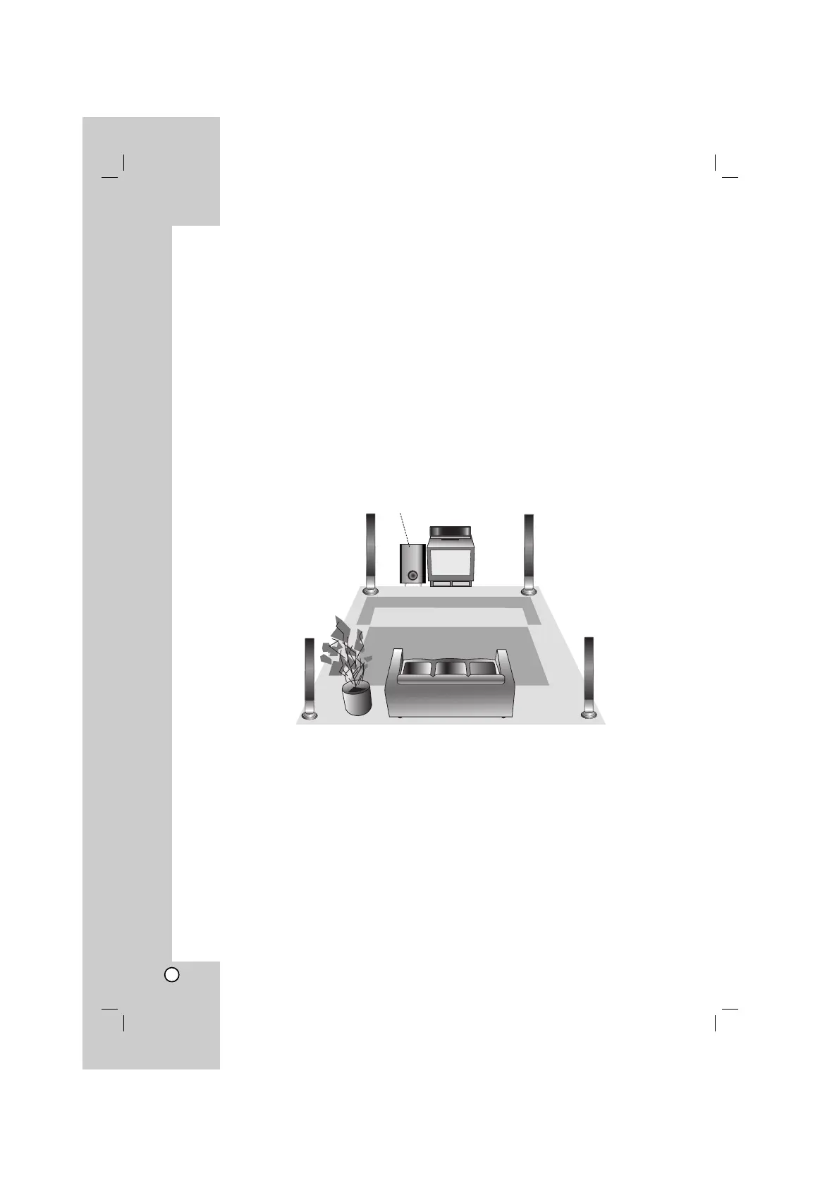 above the level of the listener’s ears. It is also effective to direct the rear speakers towards a wall or ceiling to further disperse
