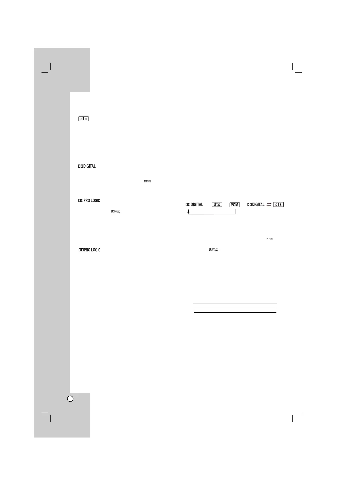 PRO LOGIC, etc) by pressing the AUDIO button on the