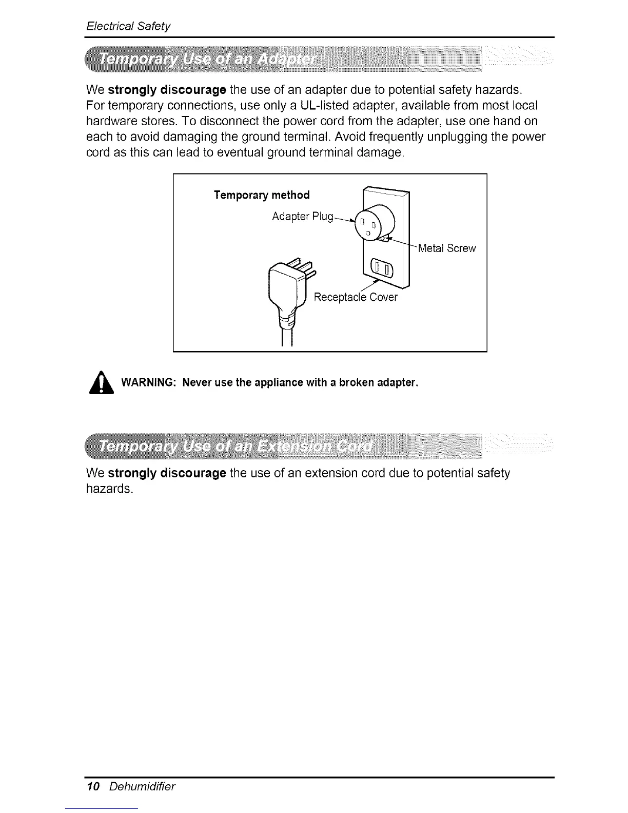 hardware stores. To disconnect the power cord from the adapter, use one hand on