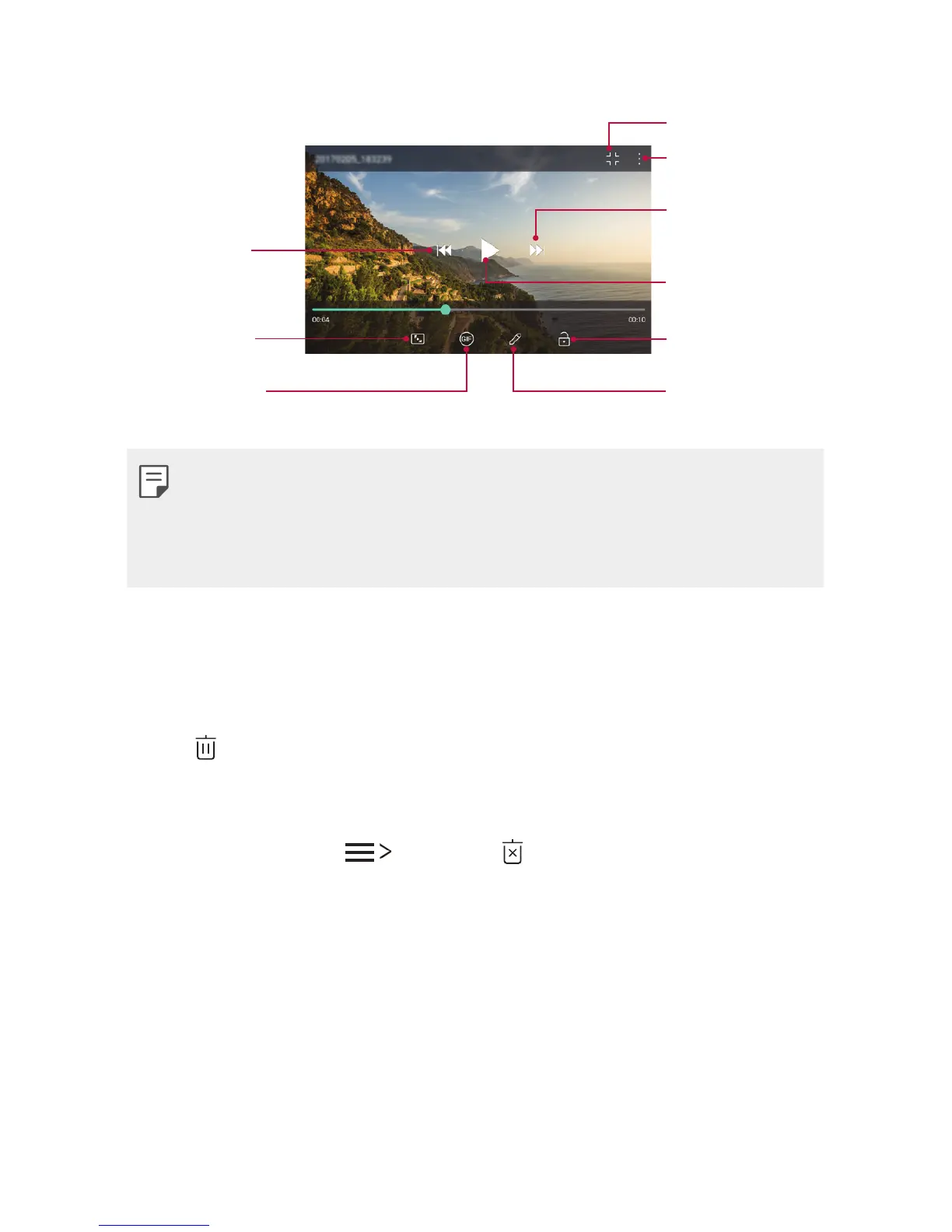 • Touch and hold a file from the file list, then tap Delete.