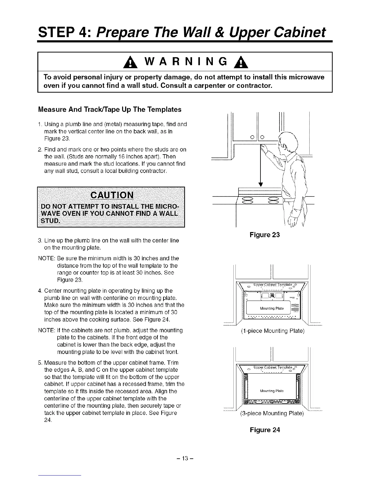 oven if you cannot find a wall stud. Consult a carpenter or contractor.