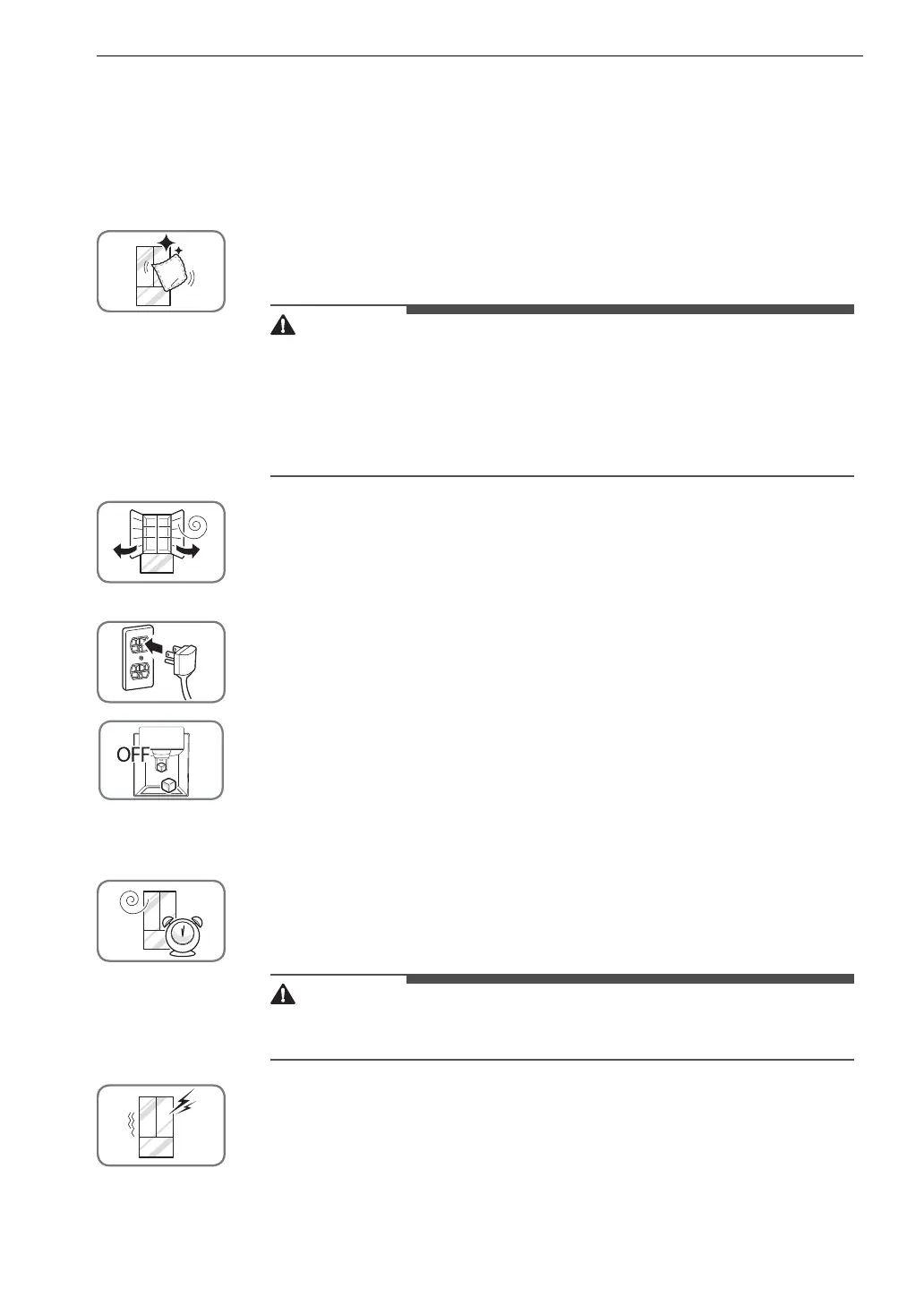 Open refrigerator doors and freezer drawers to ventilate the