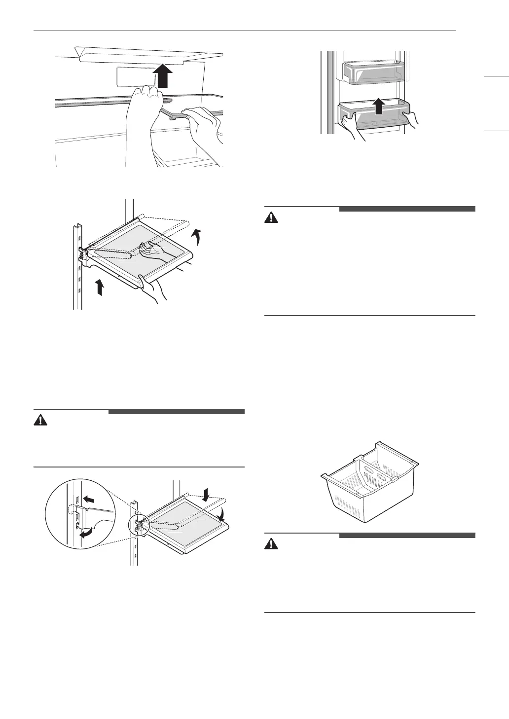 • Regularly detach and wash the storage bins and