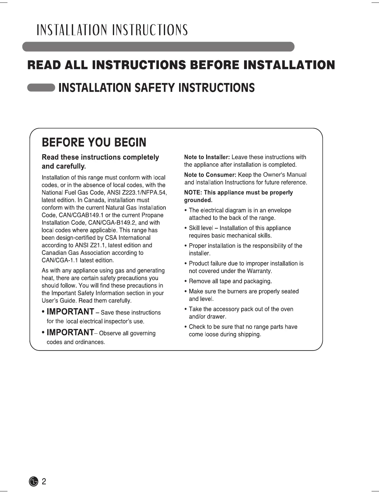 LG LRG3097ST - Safety Instructions