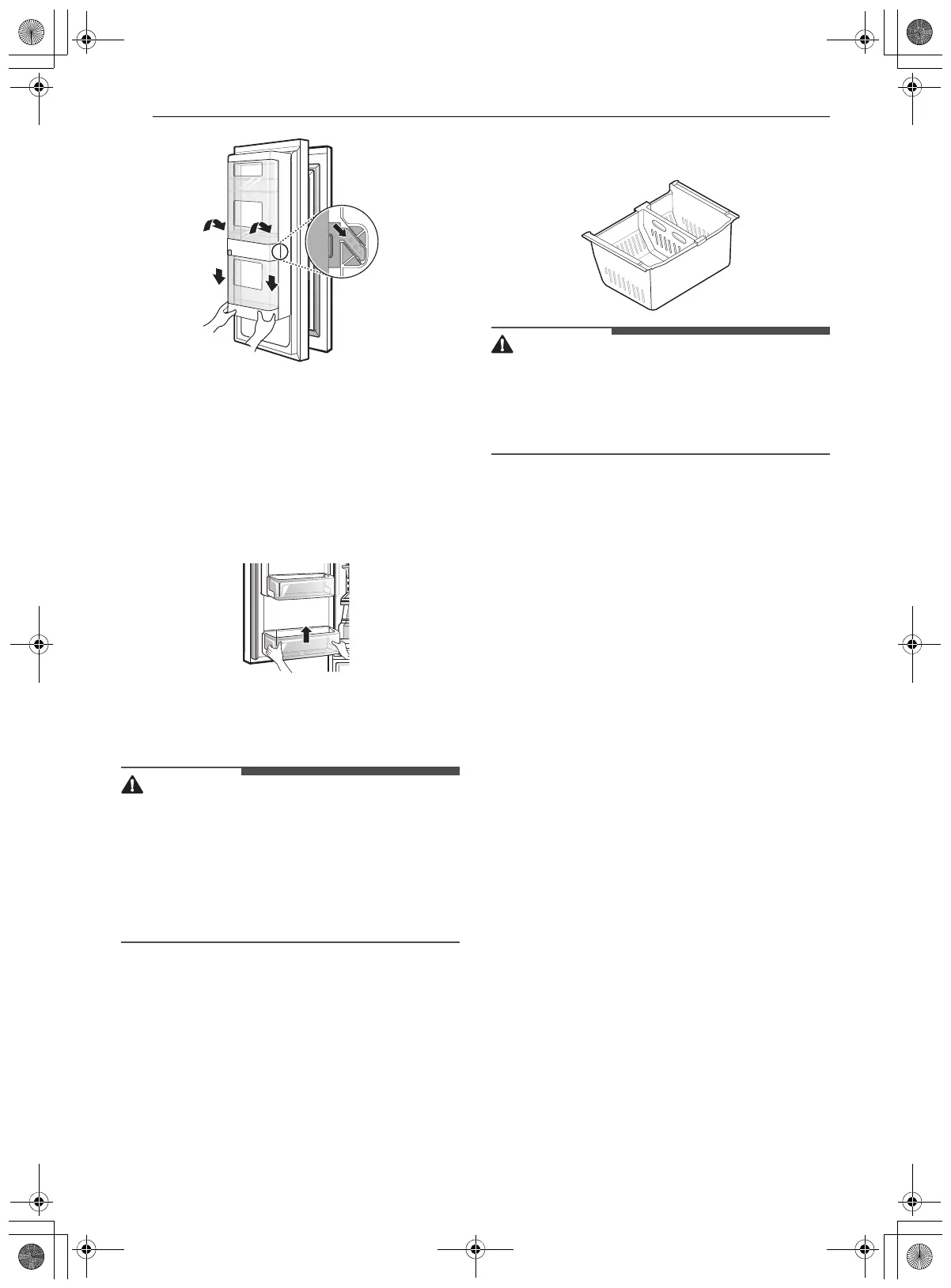 • Regularly detach and wash the storage bins and