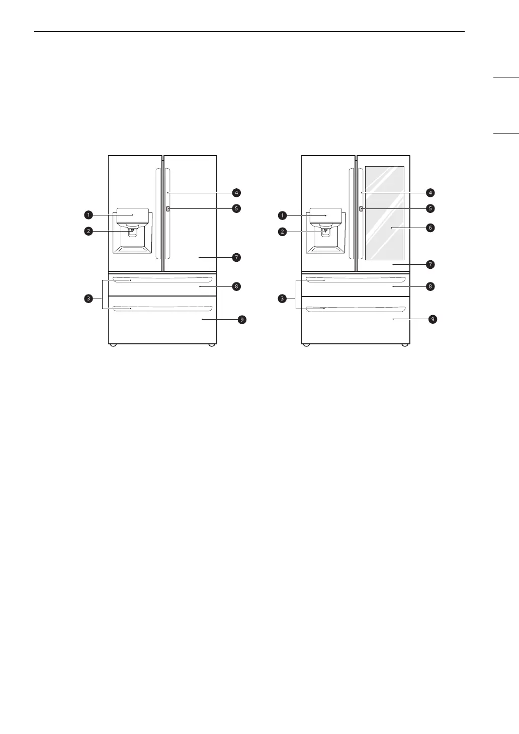 Sets the refrigerator temperature and freezer temperature, the water filter condition and the dispenser