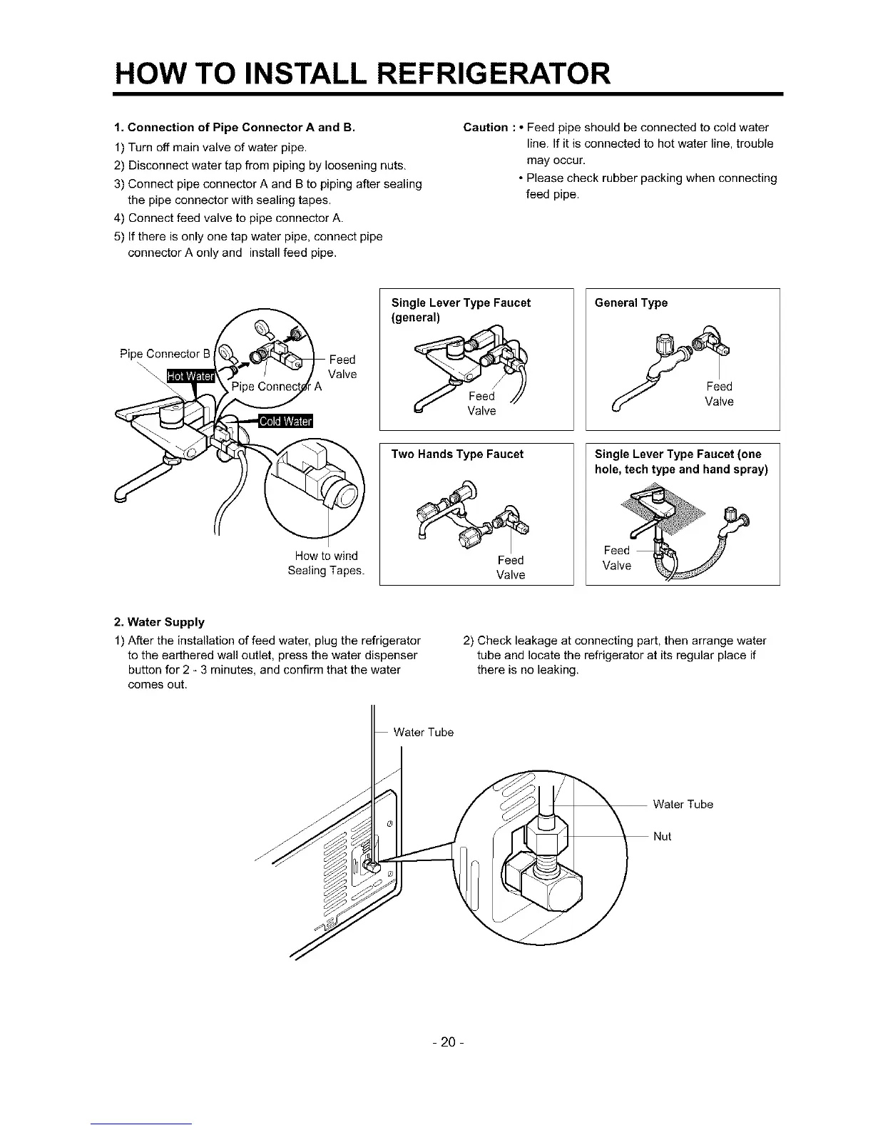 Caution : • Feed pipe should be connected to cold water