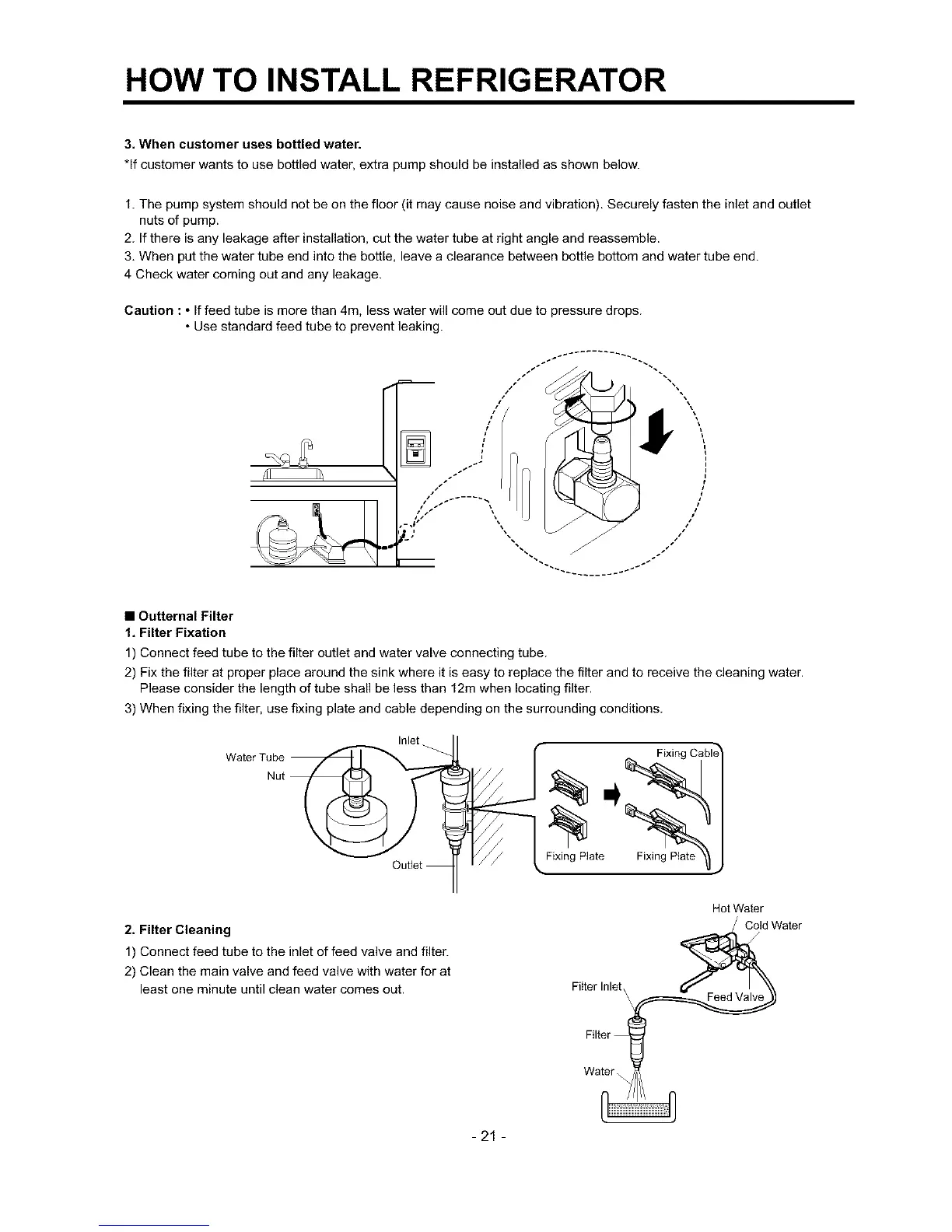 Caution : • If feed tube is more than 4m, less water will come out due to pressure drops.
