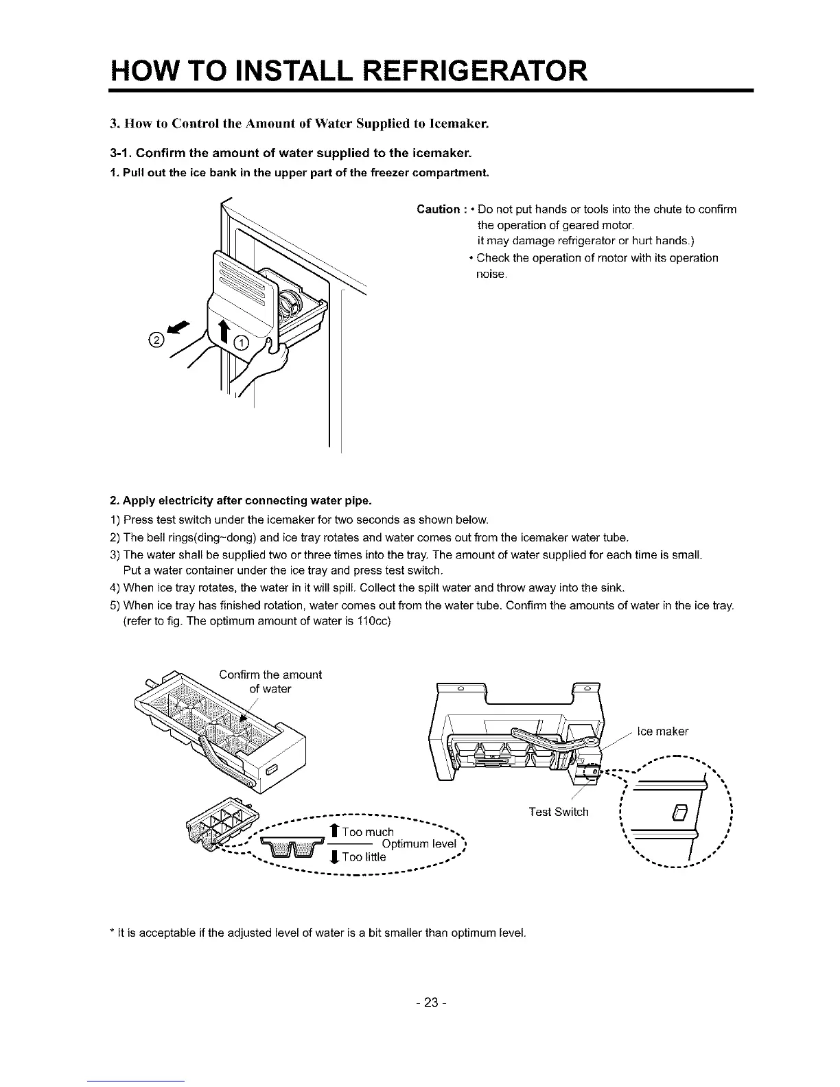 3-1. Confirm the amount of water supplied to the icemaker.