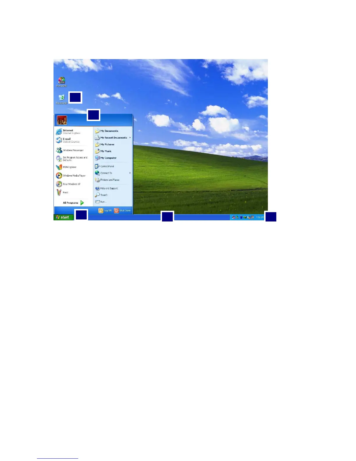 [Start menu] shows everything you need to start working in the Windows XP