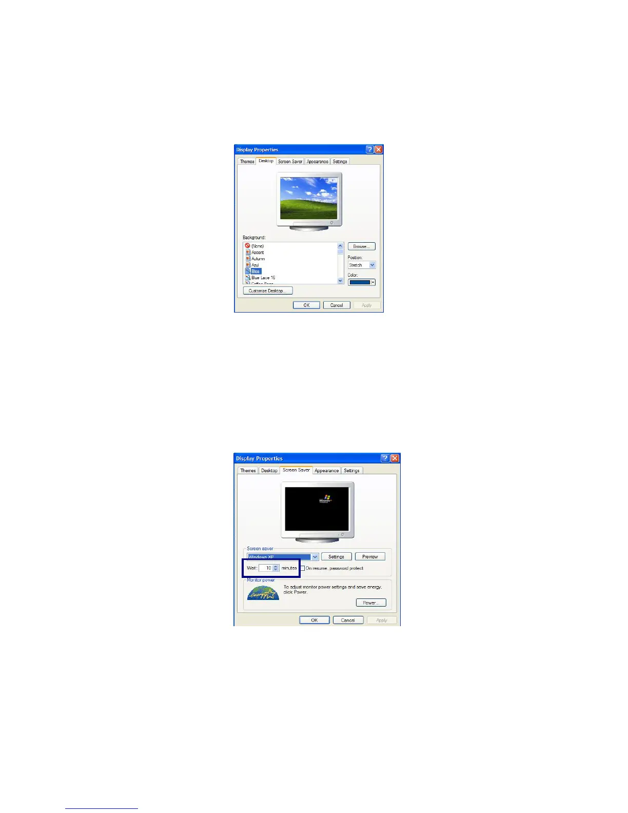 Select the idle time before activating the Screen Saver from [Wait] drop down