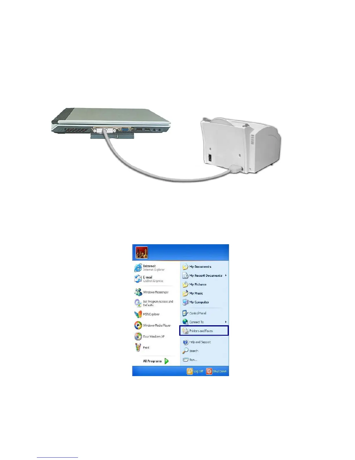 Attach a printer cable to the computer, then click [Start] from the Taskbar and