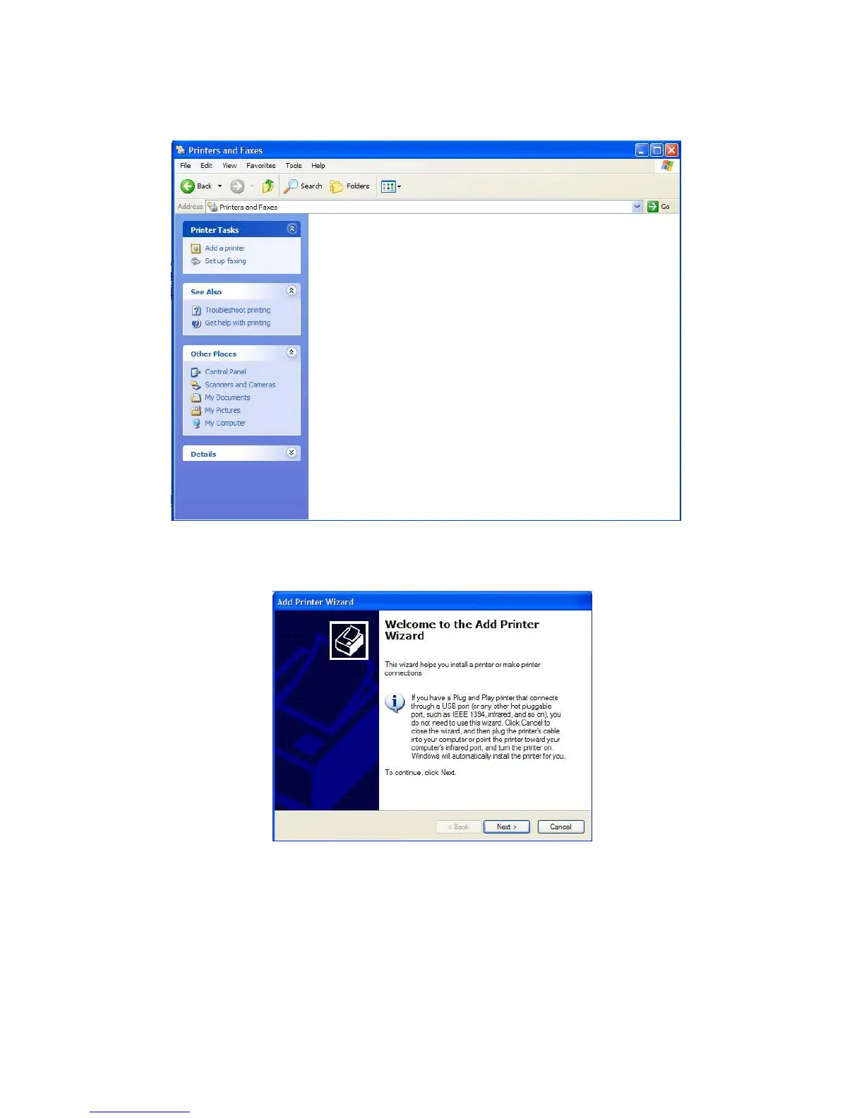 In the Add Printer Wizard, follow the instruction to set up a printer.