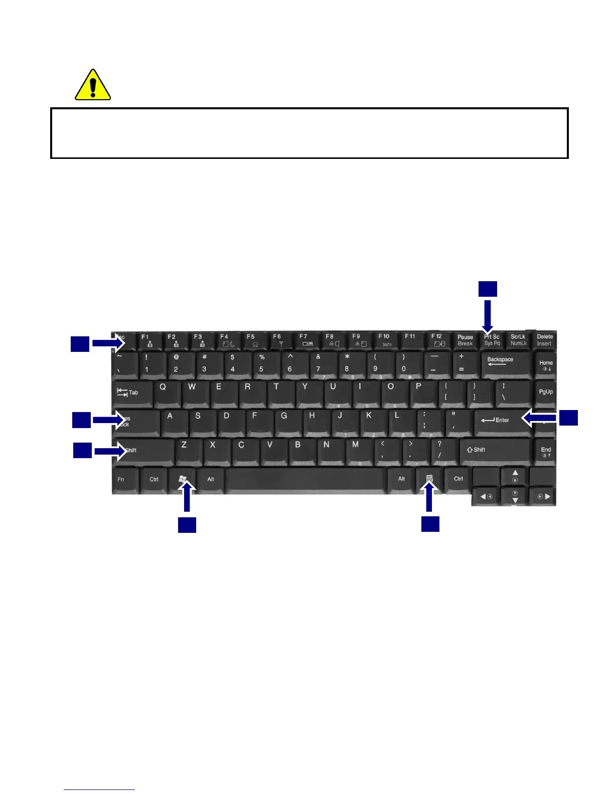Caps Lock key: Press Caps Lock key to lock the keyboard in the upper case position.