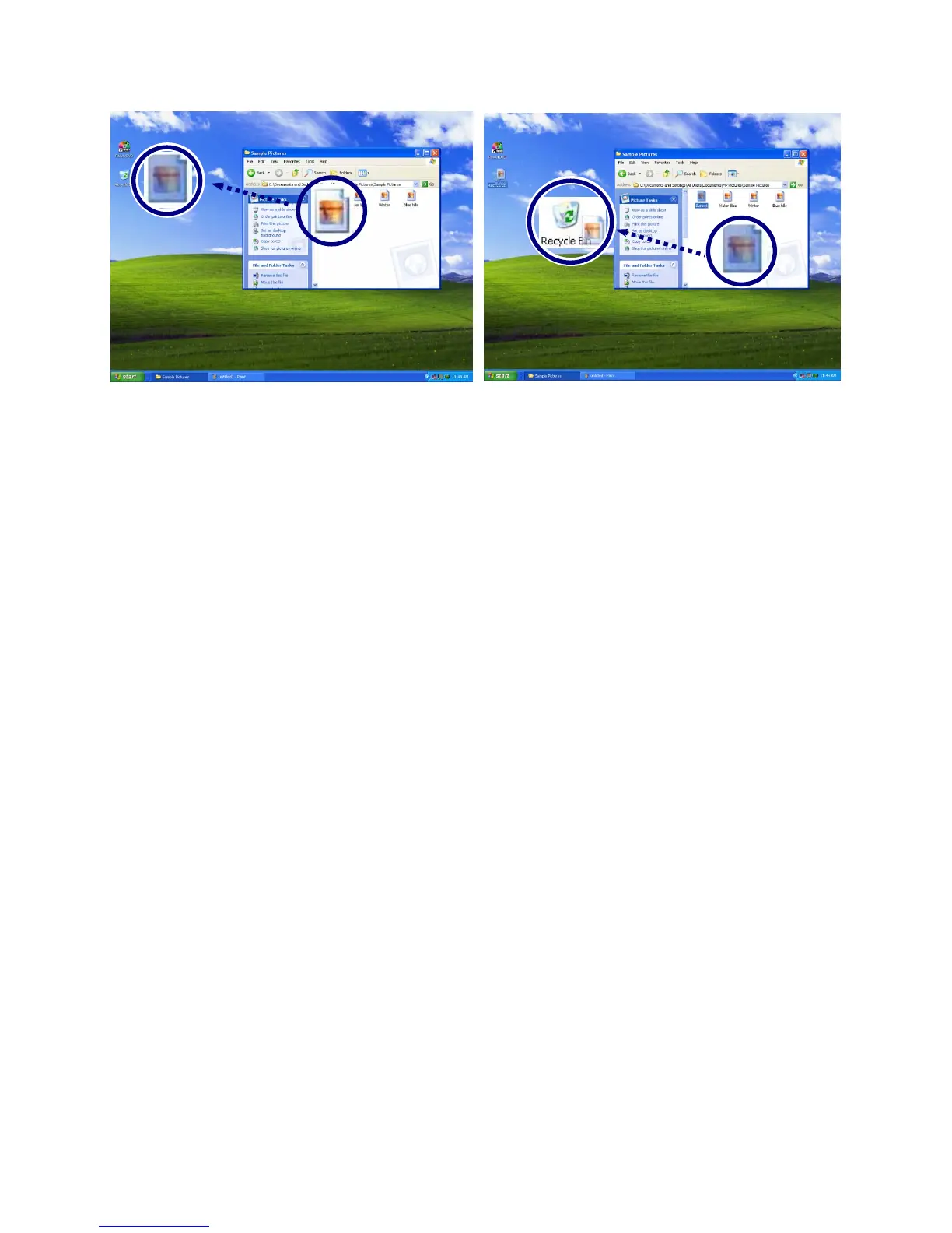 Drop: Release the left button above the recycle bin.