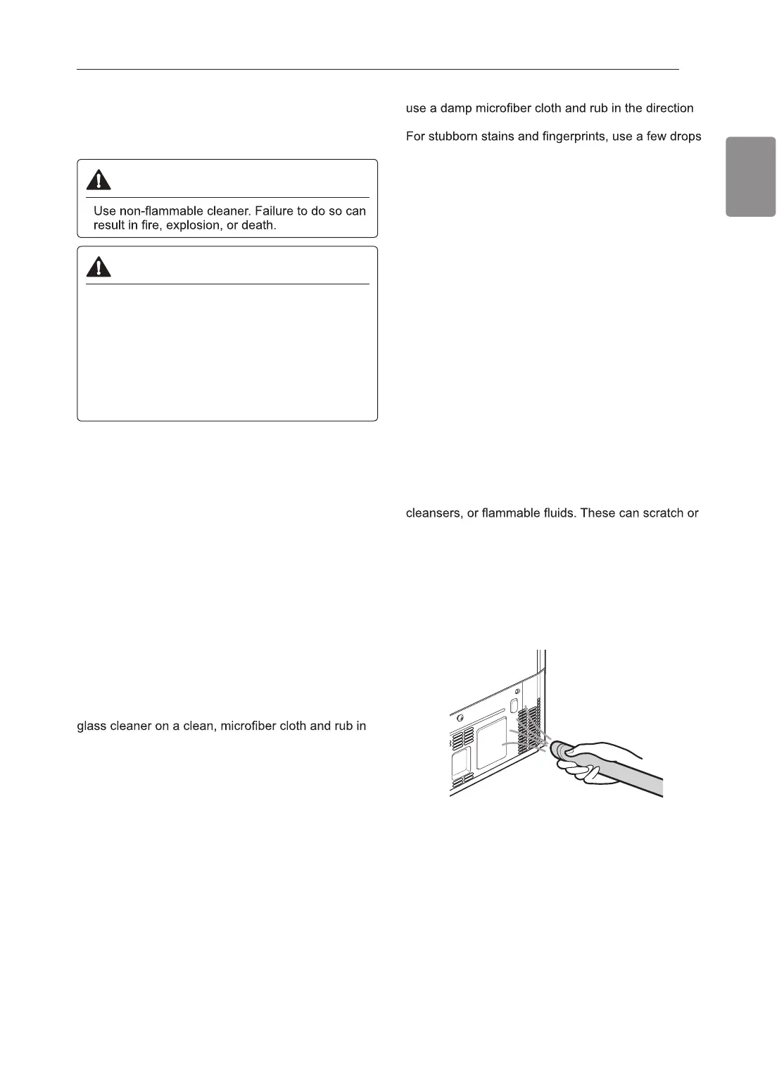 direction of grain. Do not spray glass cleaner directly