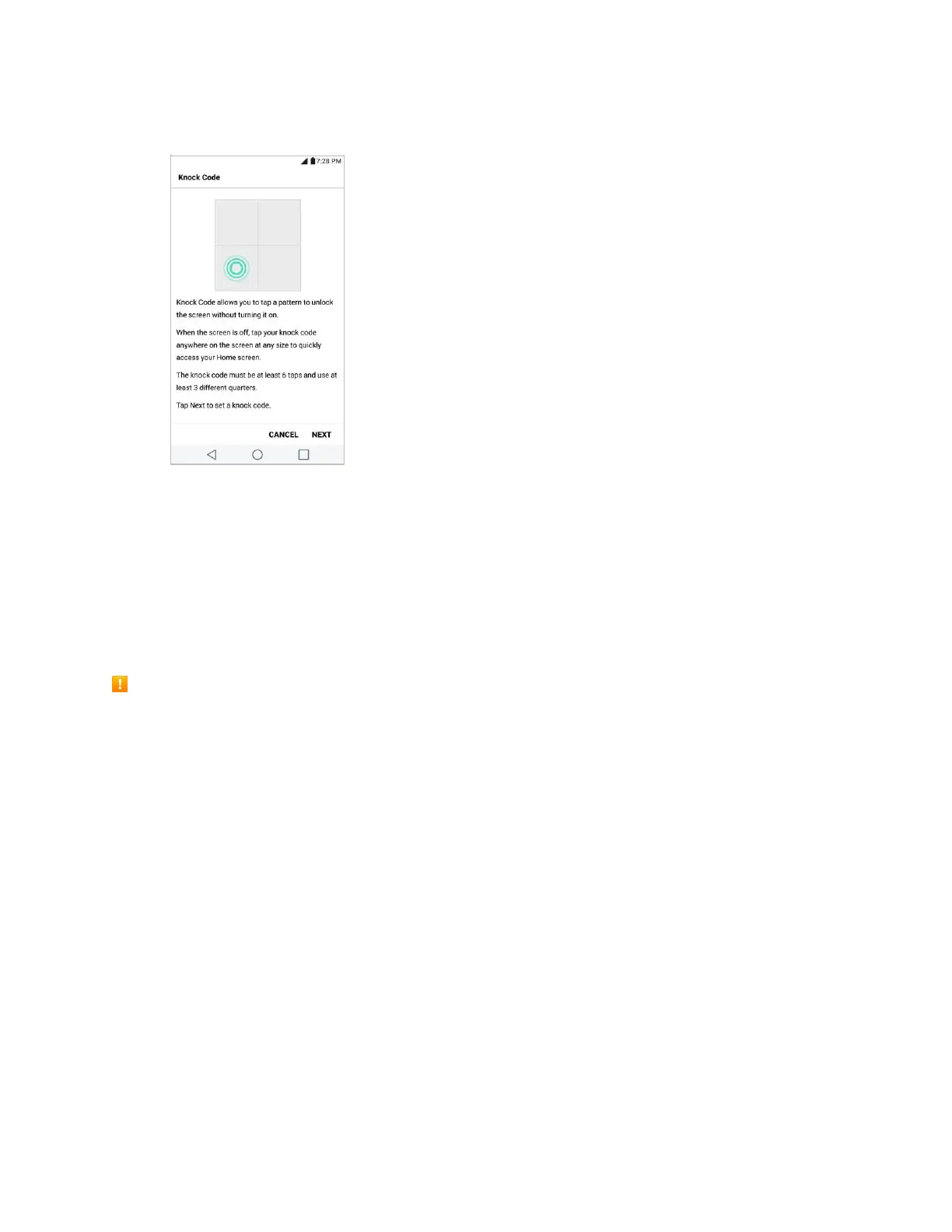 4. Use the 2x2 grid to create a sequence of knocks (or taps) to set your knock code.