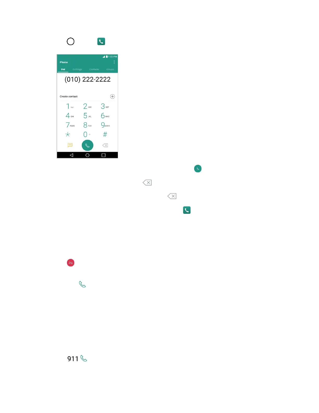 2. Enter a phone number using the on-screen dialpad and tap .