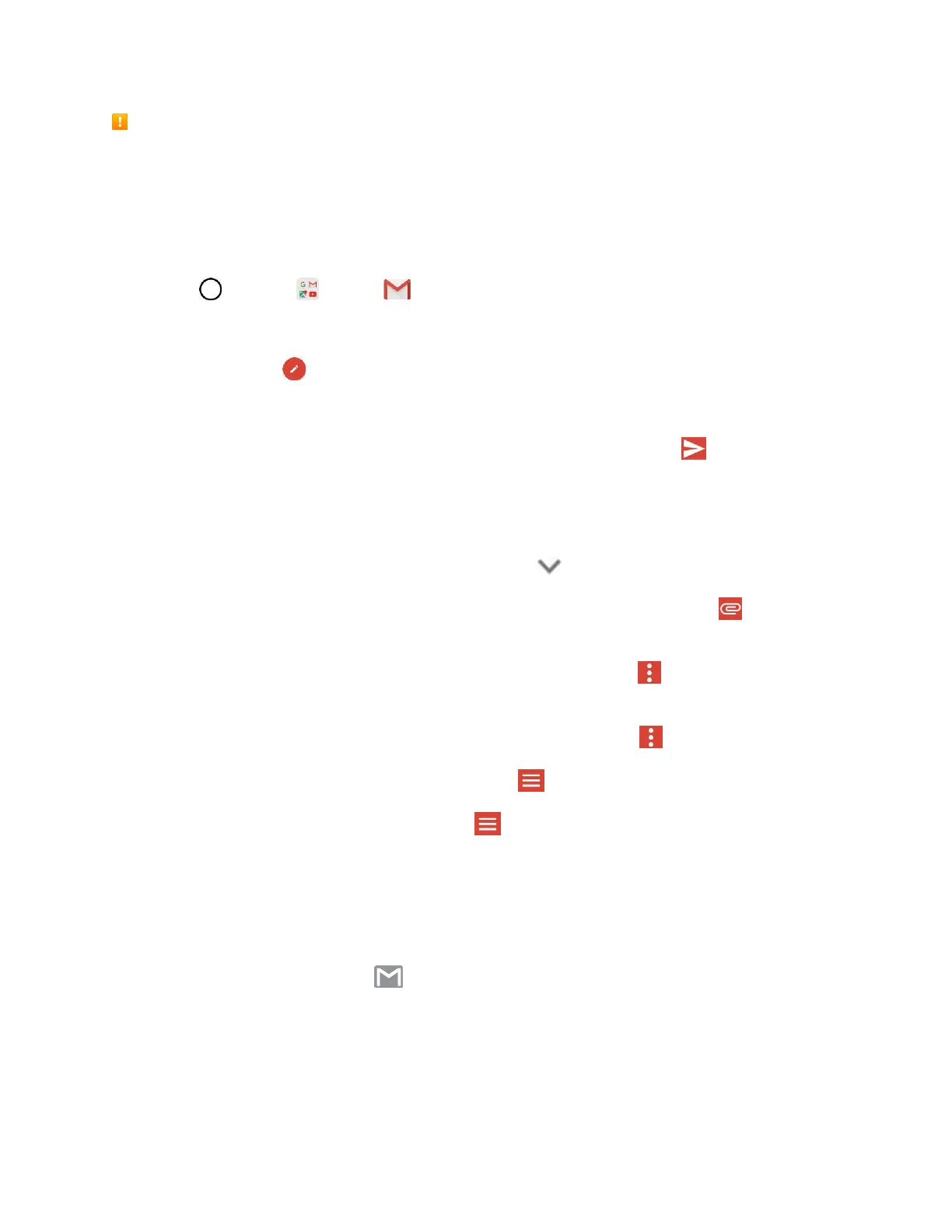 ● Attaching Pictures or Videos: In the mail composition window, tap Attach file . Locate and