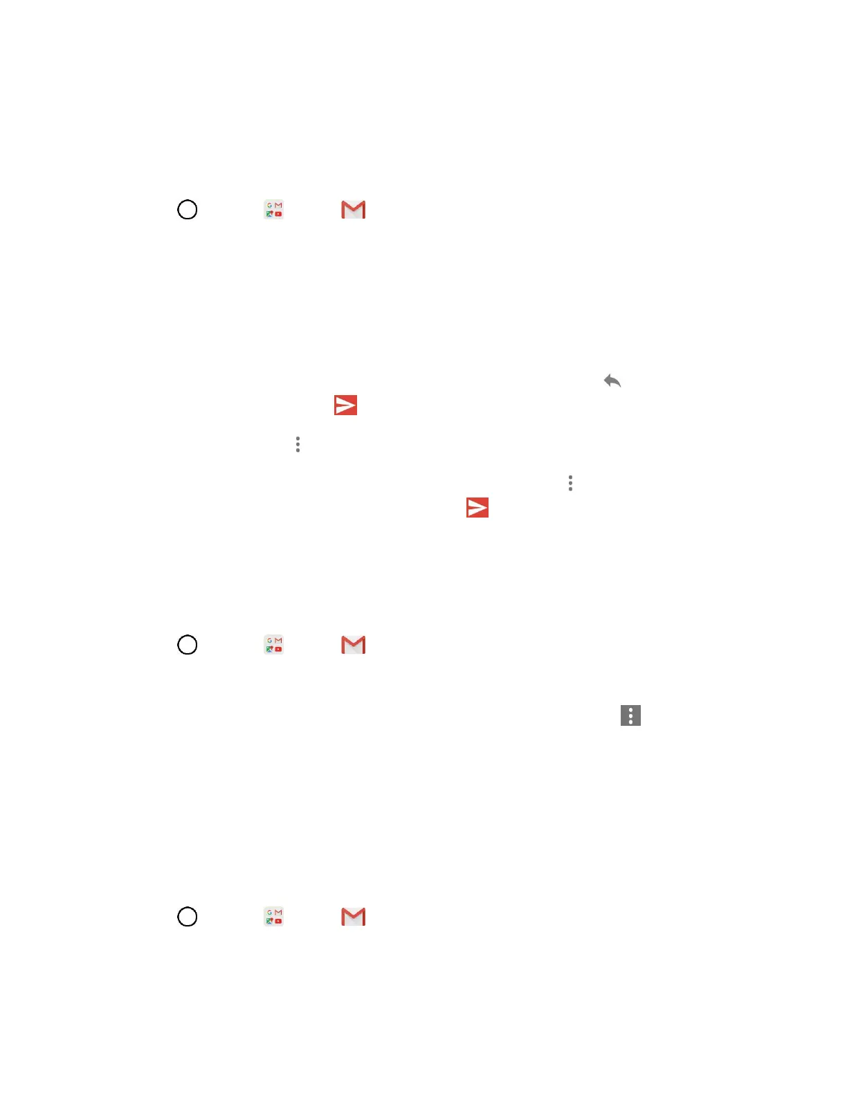 ● Replying to Gmail Messages: With the Gmail message open, tap Reply , compose your